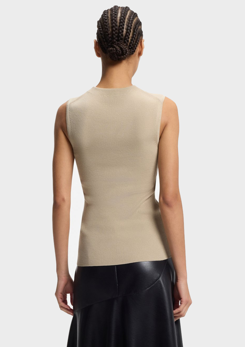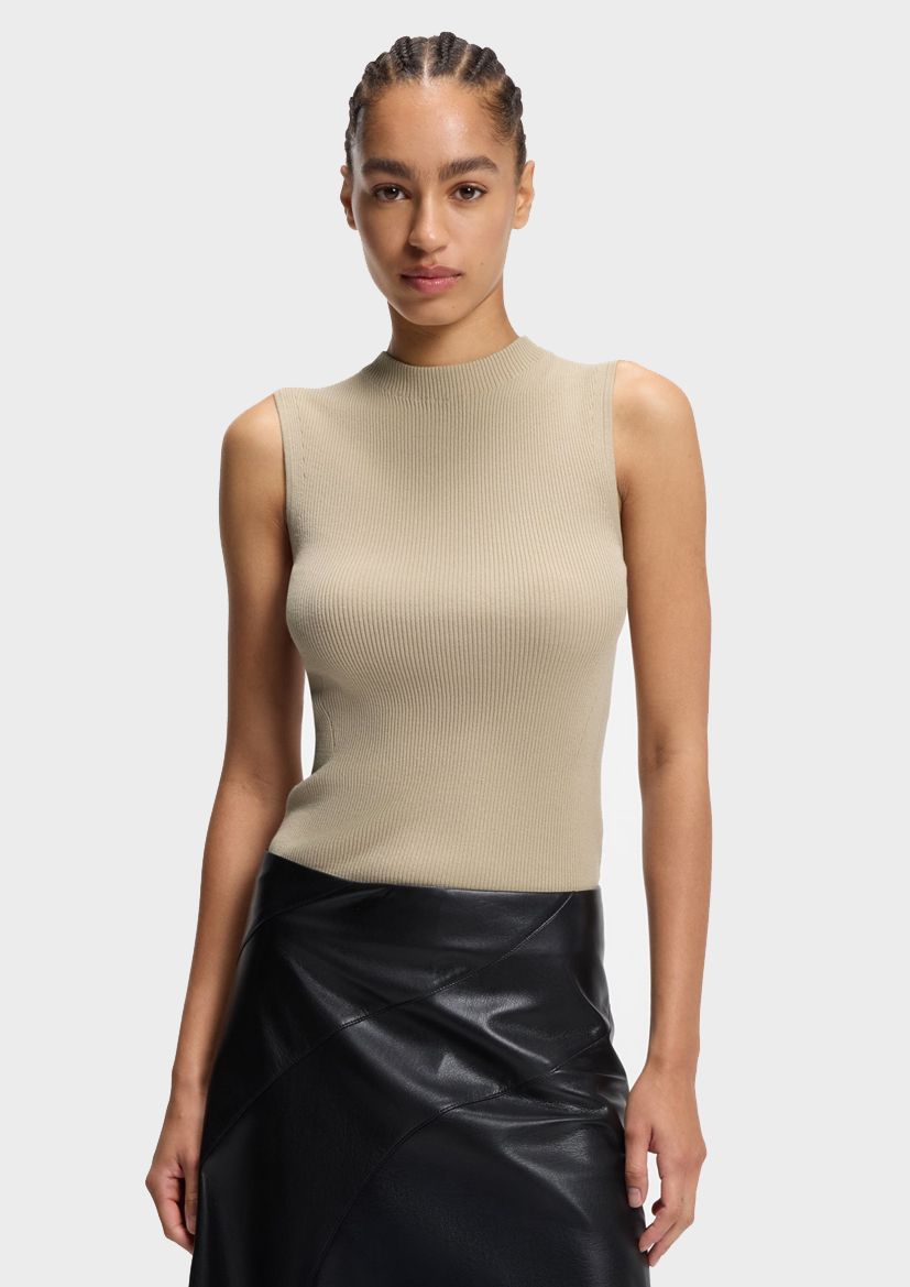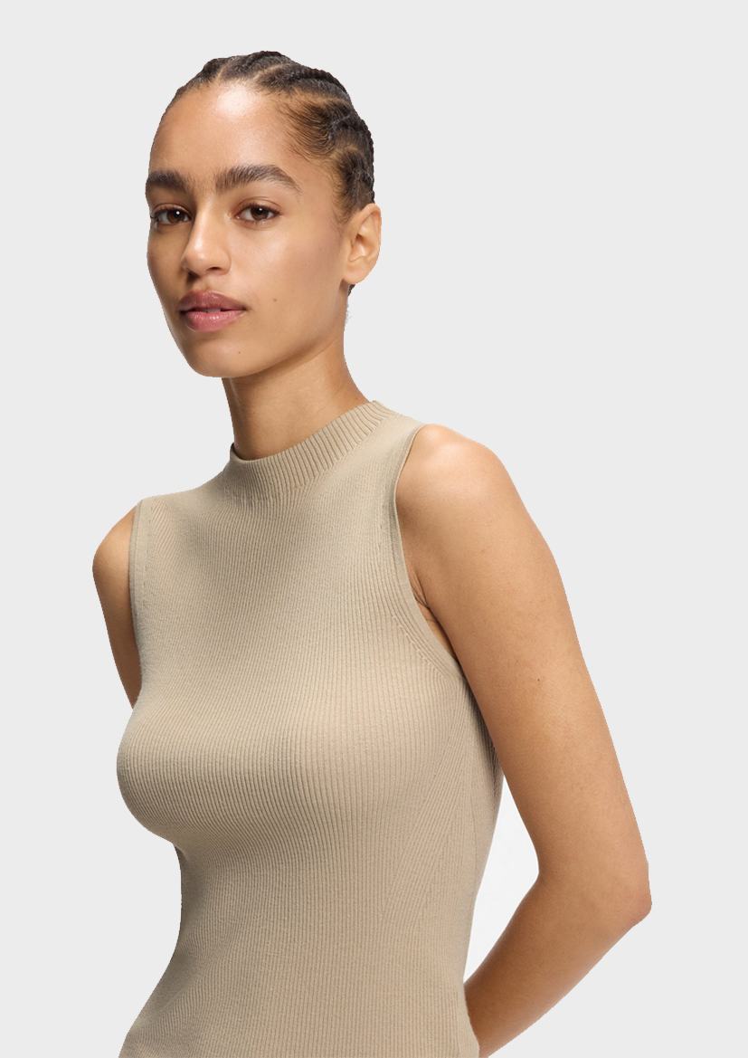 Этот удобный женский топ BOSS из эластичного, дышащего трикотажа в рубчик является универсальной основой. Имитация шеи. Облегающий крой с элегантными швами.