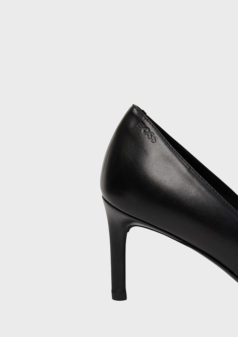 Элегантные туфли BOSS Gracey Pump70 станут незаменимым элементом вашего гардероба! Верх из качественной кожи обеспечивает комфорт и долговечность, а классический черный цвет легко сочетается с любым образом — от делового костюма до вечернего платья.