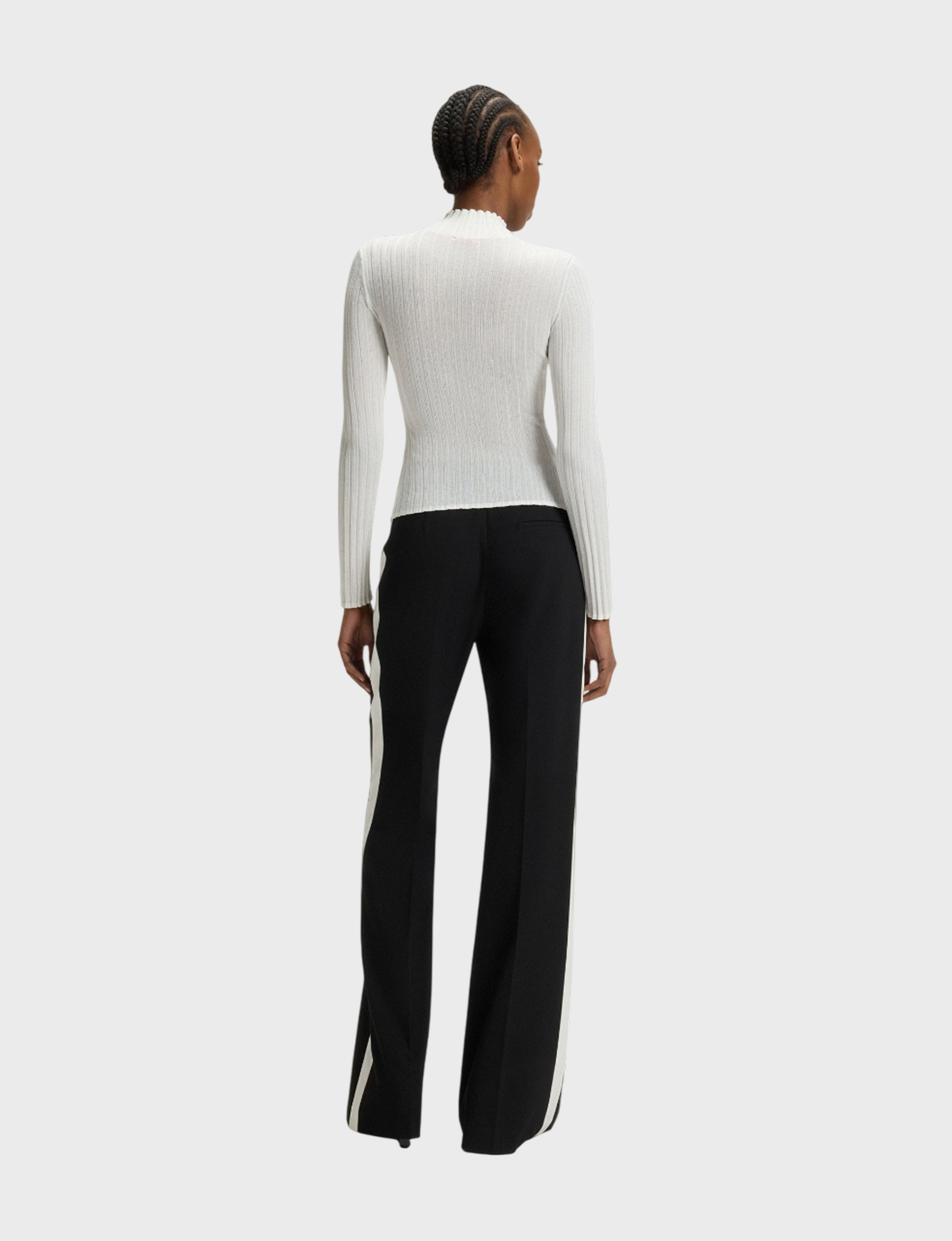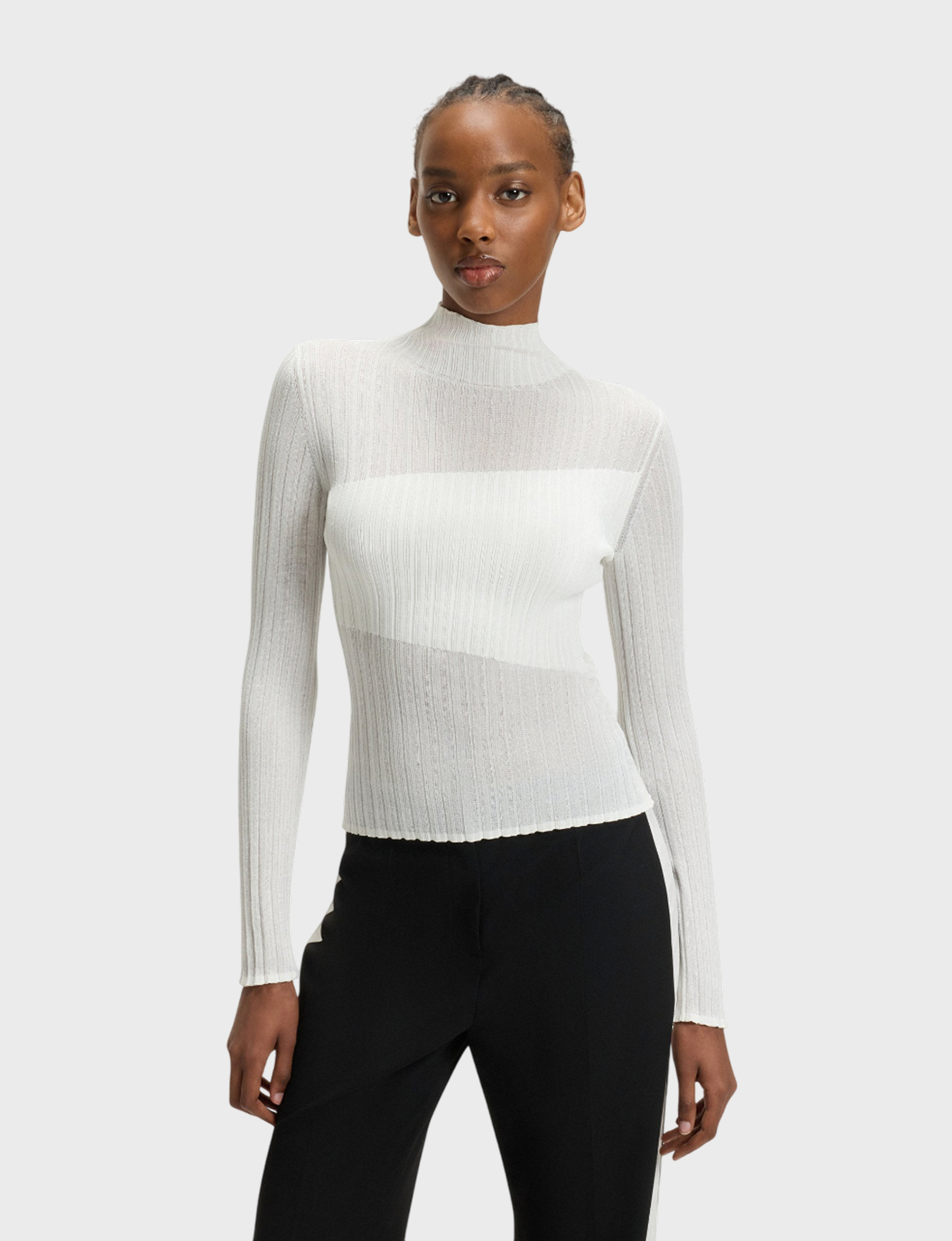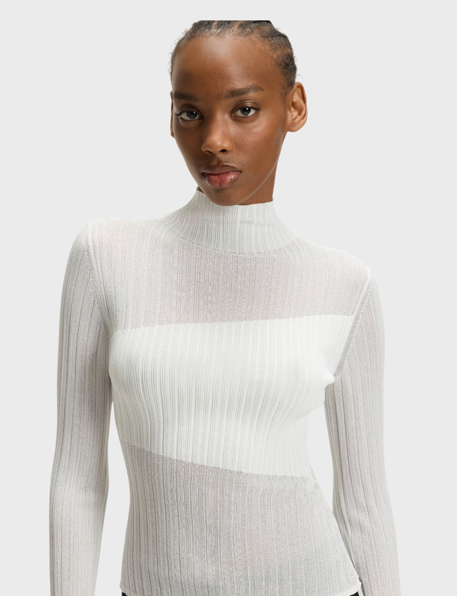 Подходит как базовый элемент гардероба под жакеты и пиджаки либо самостоятельный образ из-за универсального дизайна. Изящная структура ткани (67% вискозы, 32% полиамида, 1% эластана) обеспечивает комфорт при носке, мягкость к телу и простоту ухода.