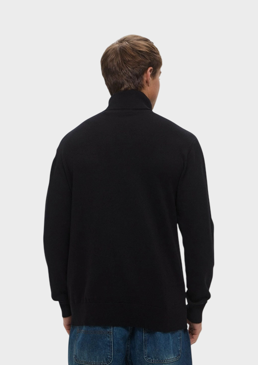 Воротник-стойка придает элегантности повседневному образу, а 100%-й хлопковый материал обеспечивает приятное ощущение при носке. Черный цвет универсален – легко сочетается с джинсами, костюмными брюками или пиджаками.