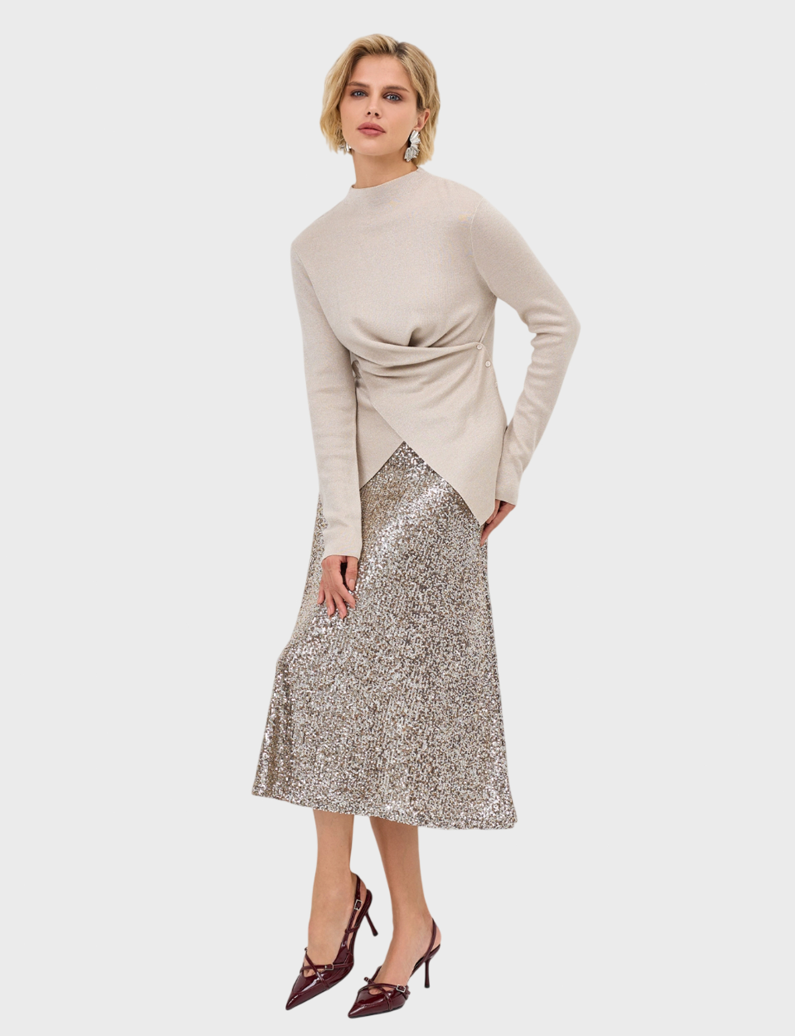 Серебряная юбка Bulmer из мягкого материала (97% полиэстер, 3% спандекс) – ваш стильный спутник в создании безупречных образов! Удобна, элегантна и универсальна легко сочетается с блузками, свитерами и жакетами.
