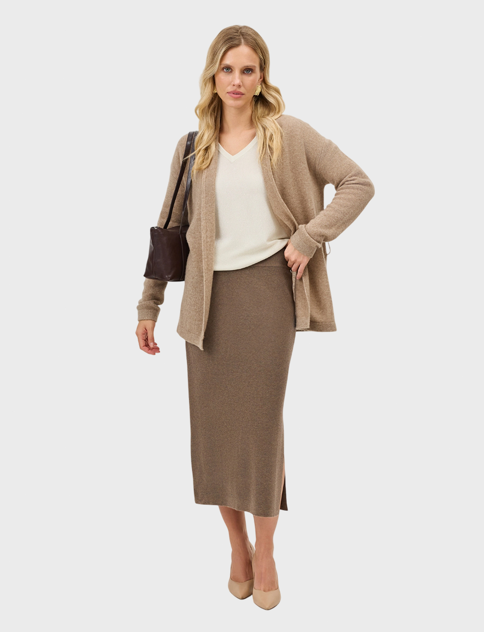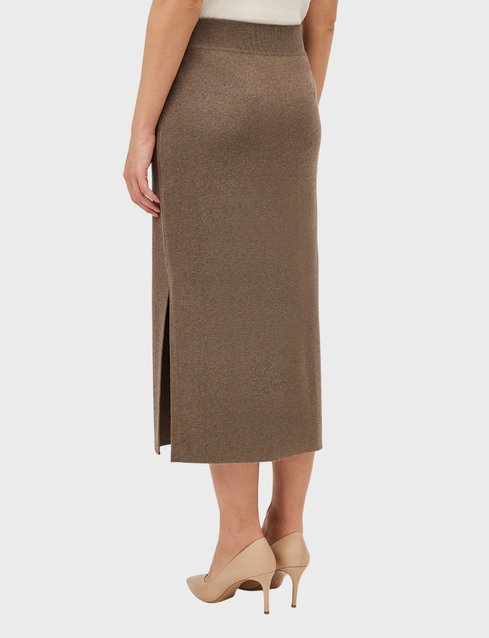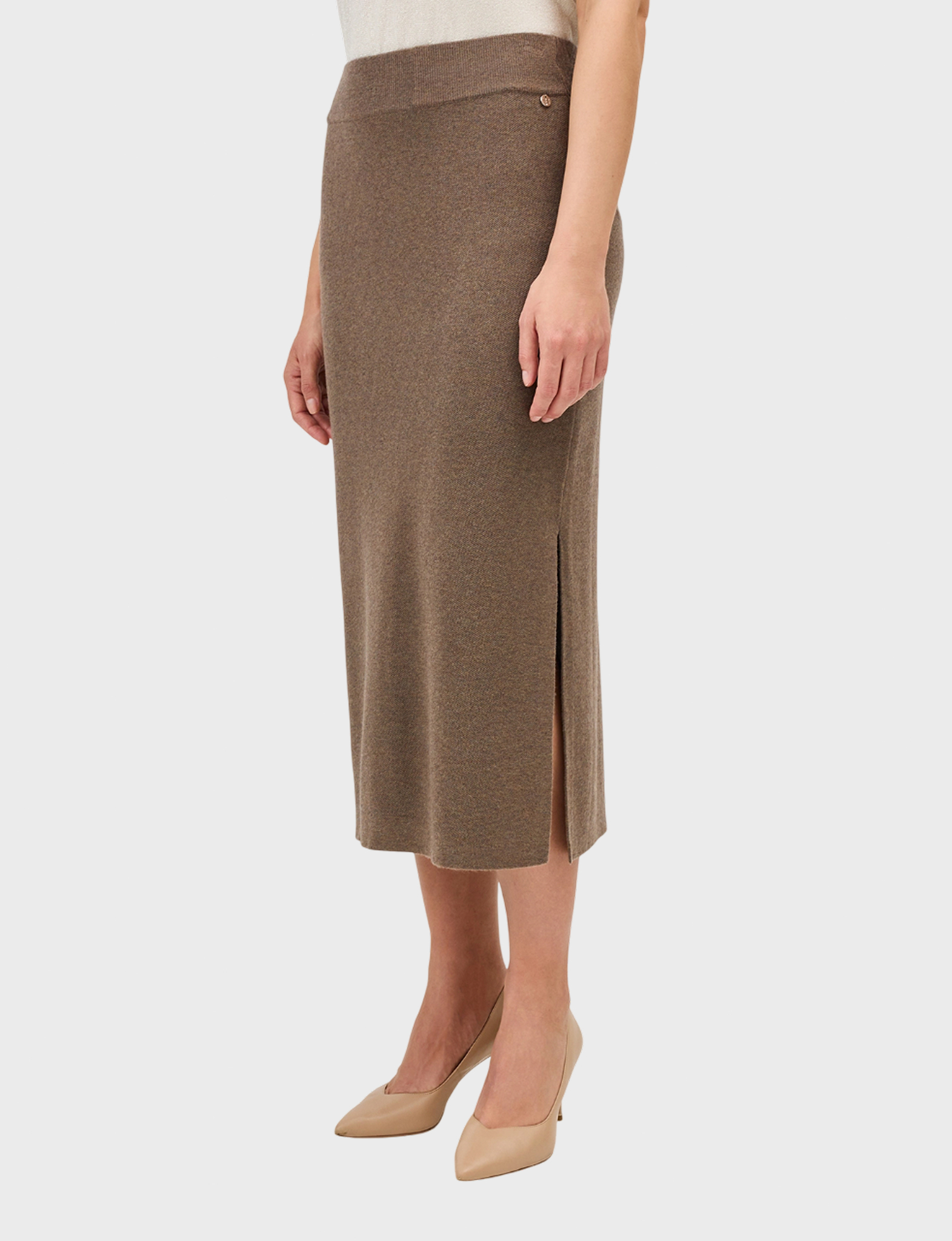 Юбка BULMER – ваш идеальный спутник в мире комфорта и стиля! Изящная коричневая юбка из смеси 50% вискозы, 44% акрила и 6% шерсти мягко облегает фигуру, подчеркивая достоинства и даря ощущение уверенности.