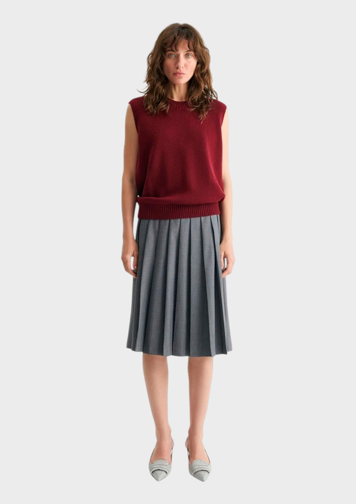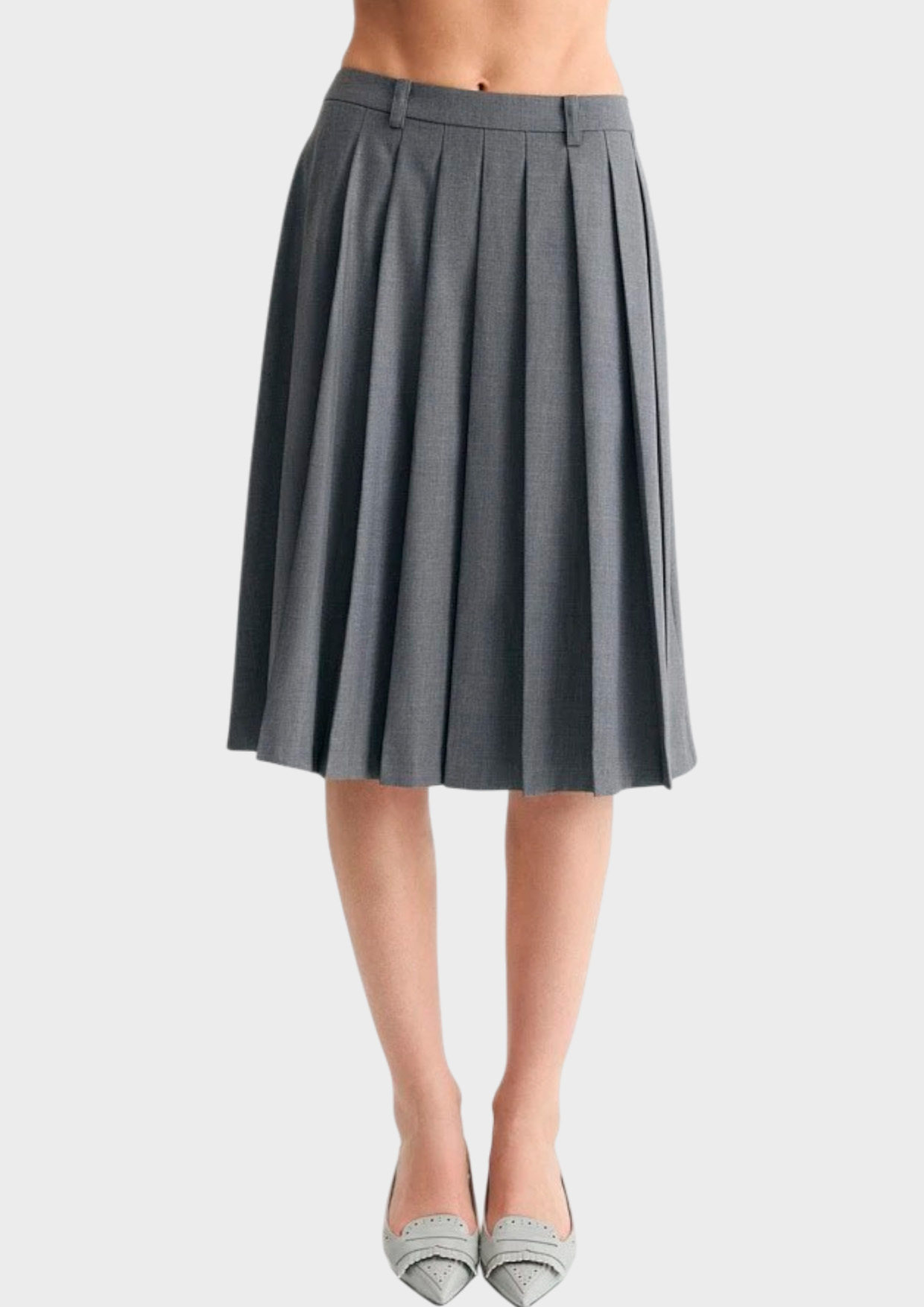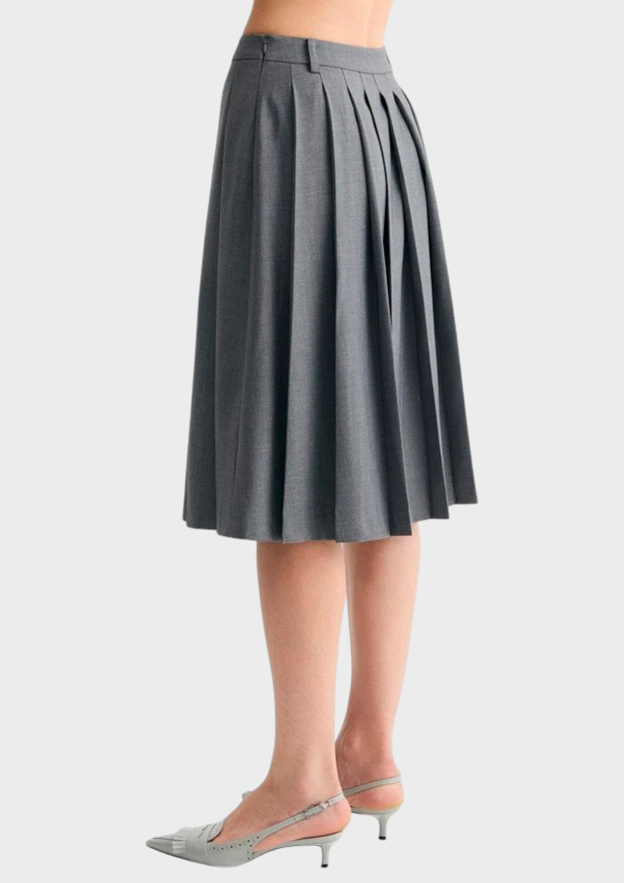 Юбка длины миди в широкую складку. Юбка будет отлично сочетаться с деловым гардеробом и поможет сформировать стройный силуэт.