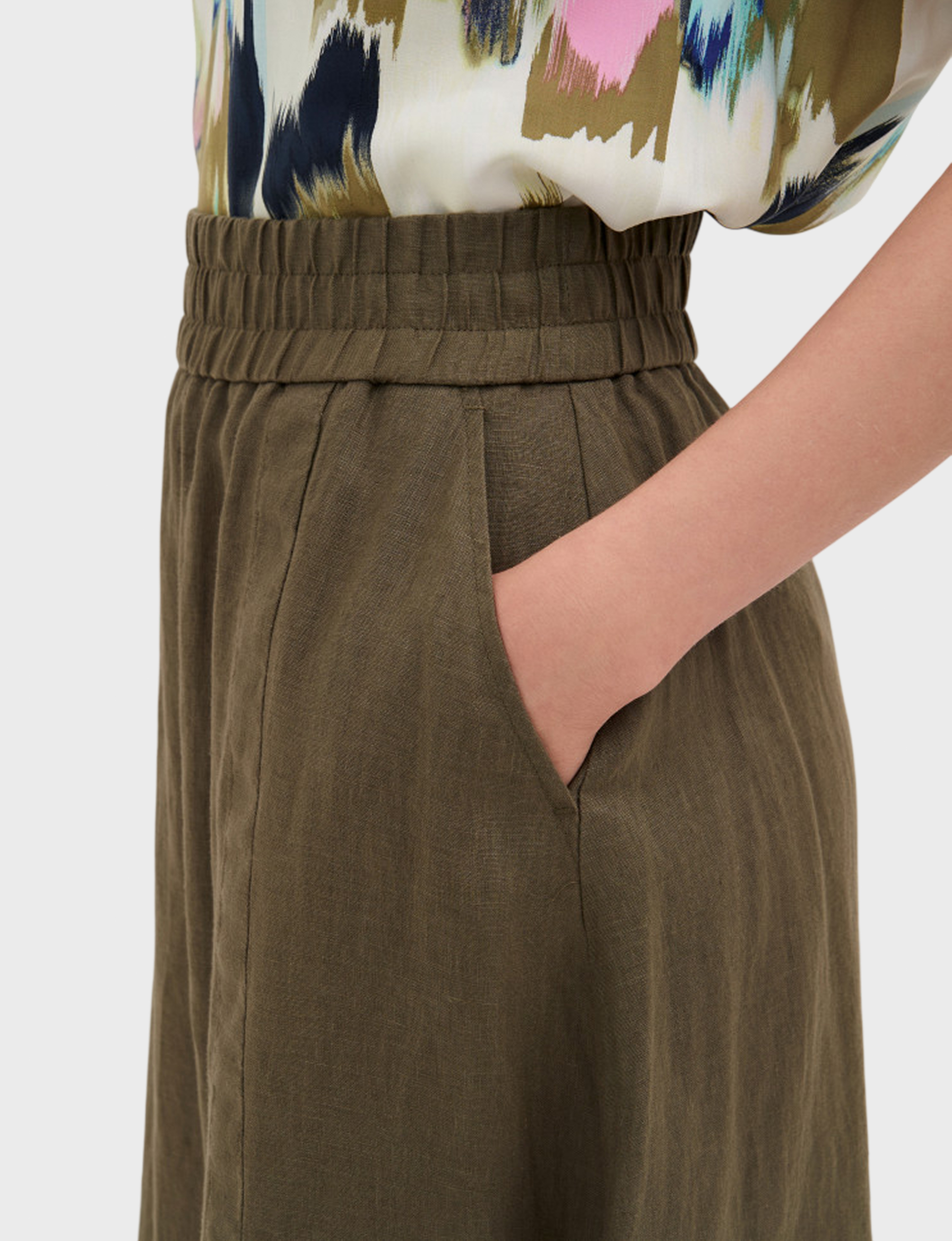 Тёмно-зелёная юбка от известного бренда GERRY WEBER –из 100% льна, который позволяет коже дышать, обеспечивая комфорт даже в жаркую погоду.