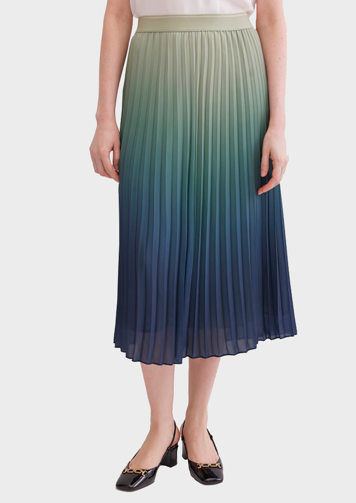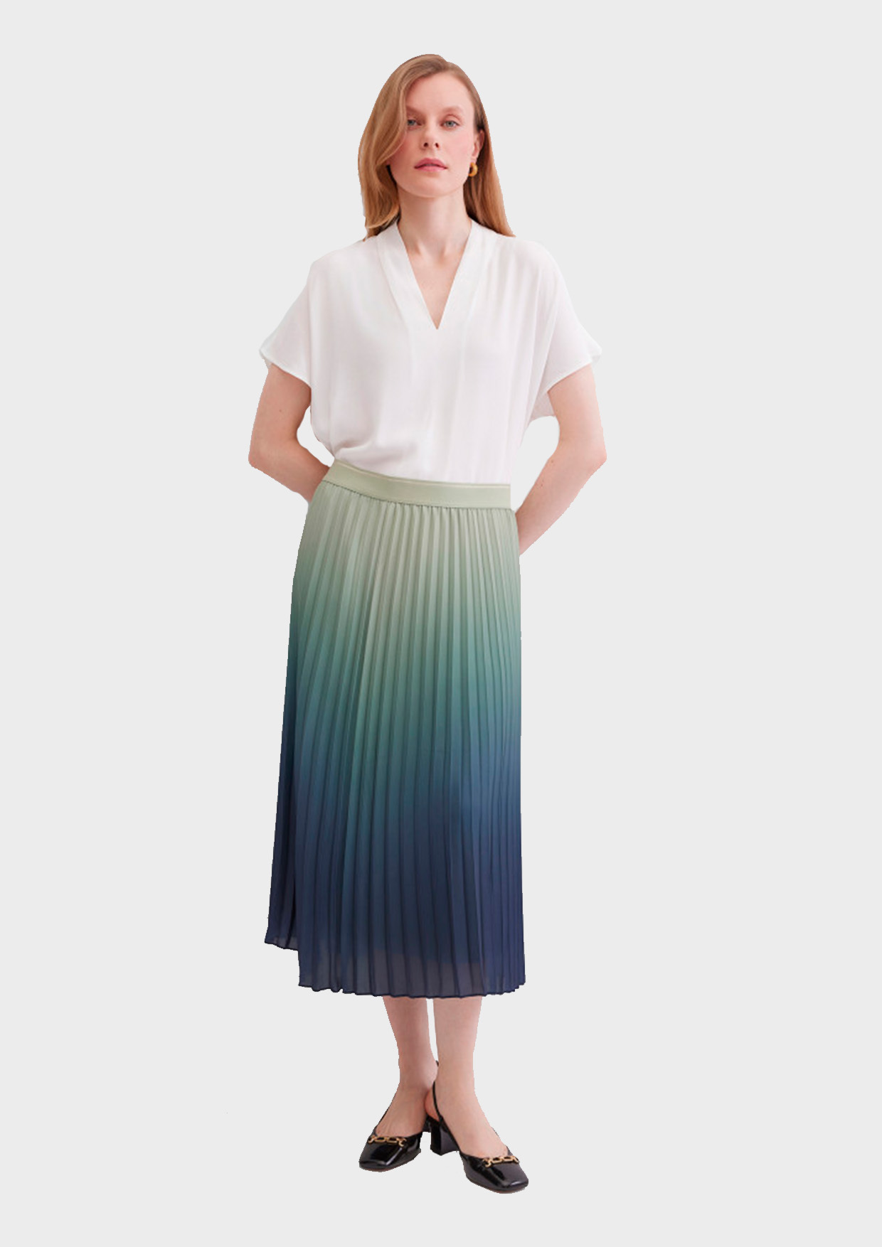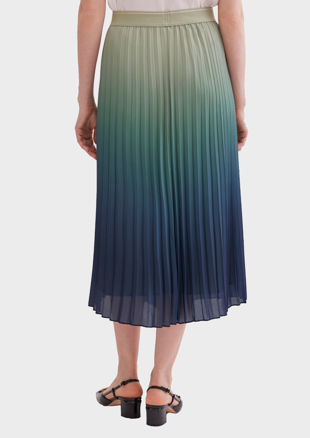 Плиссированная юбка с градиентным эффектом — лёгкая и выразительная модель для повседневного гардероба. Свободный силуэт и мягкие складки создают женственный образ, а плавный переход цвета добавляет актуальности.