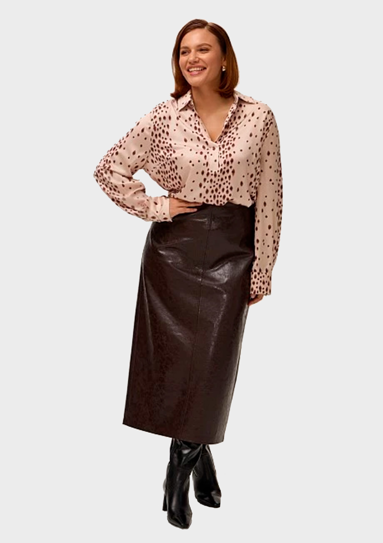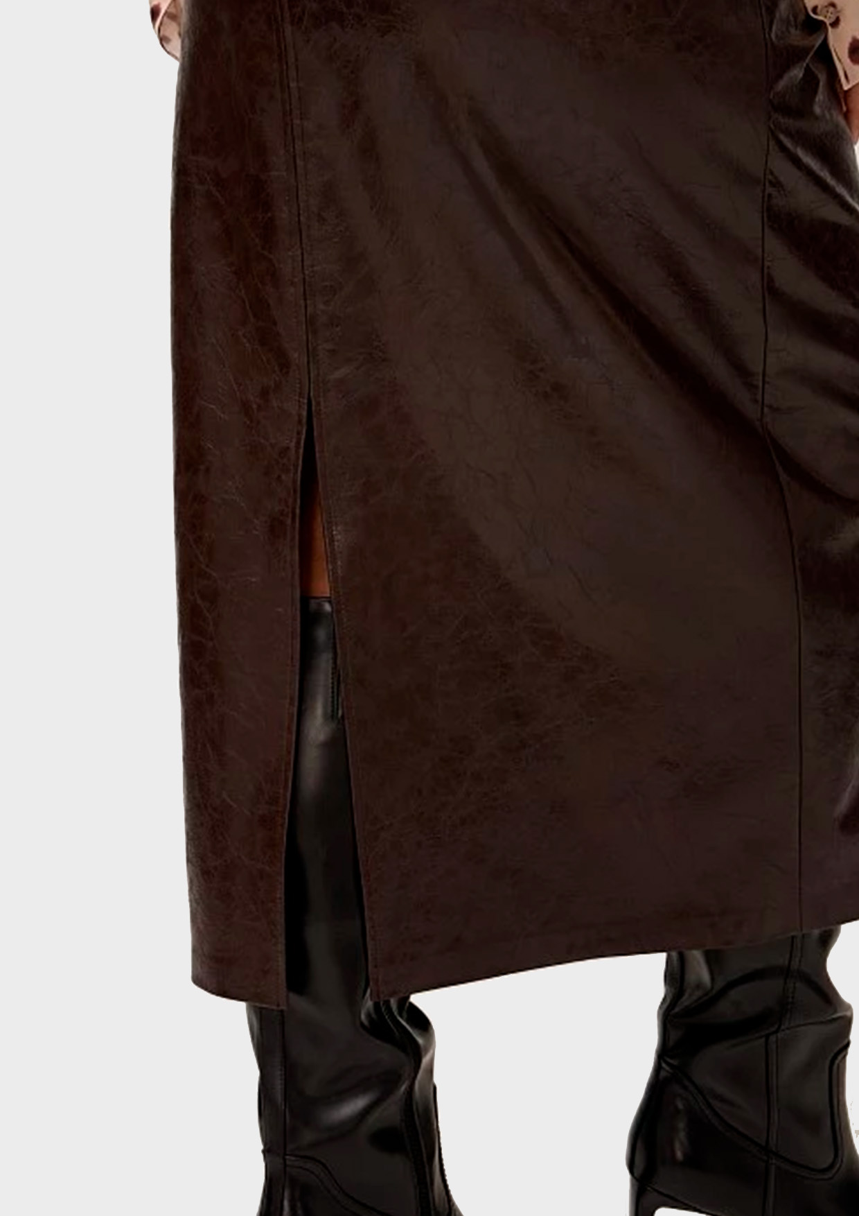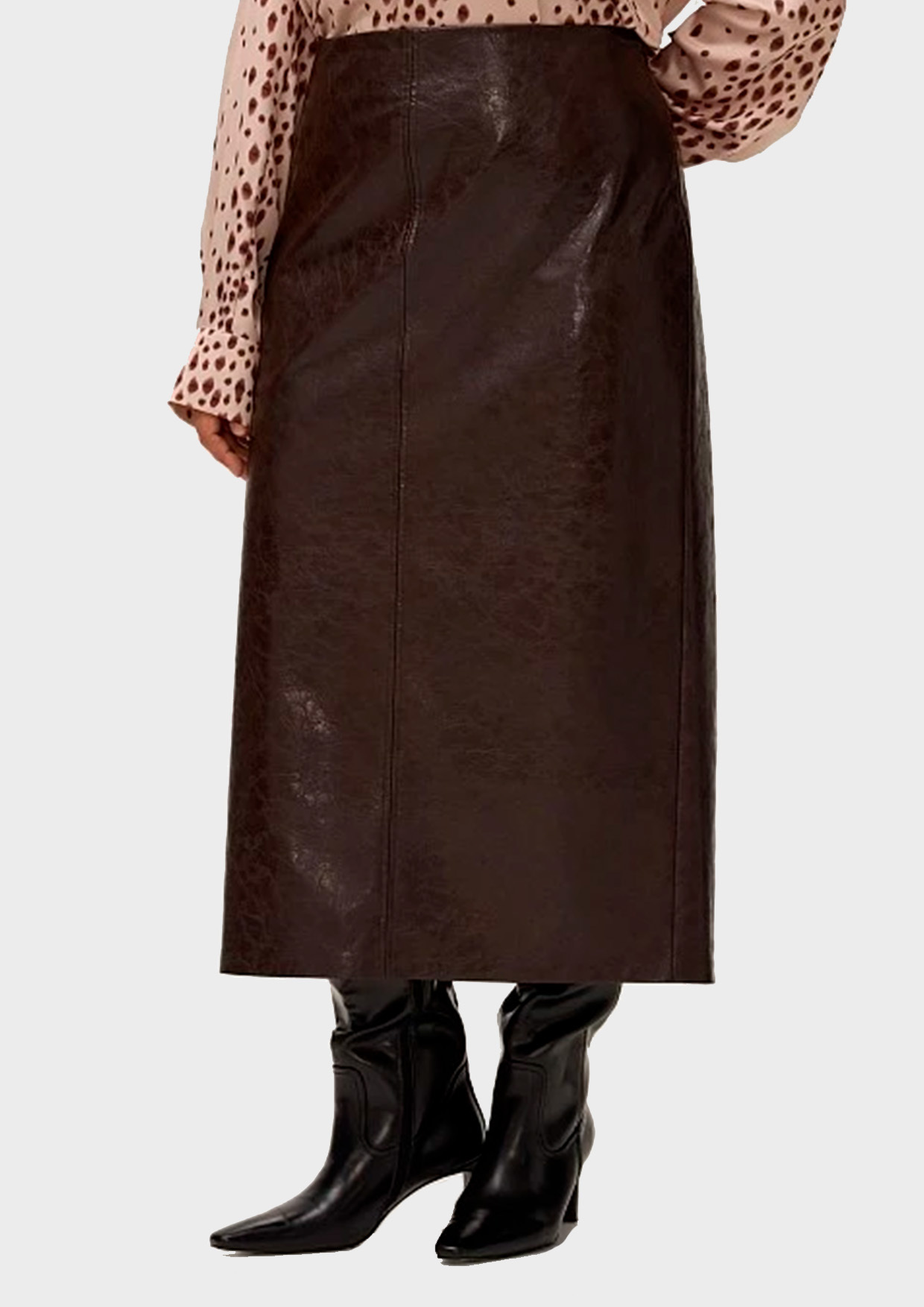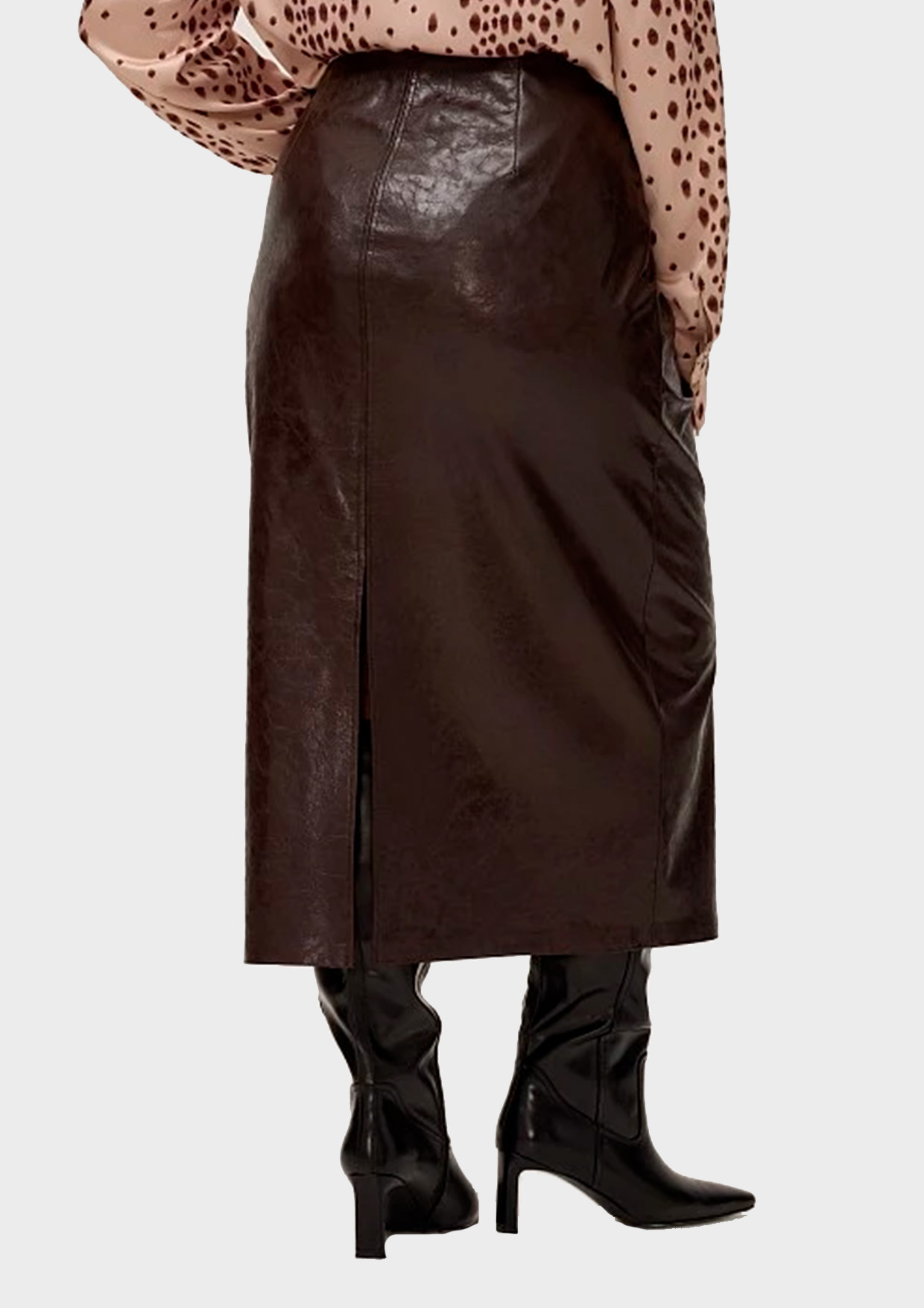 Юбка миди из эко-кожи – акцент осеннего гардероба. Изготовленная из премиальной двухслойной кожи с жатым эффектом, она выглядит роскошно, при этом остаётся комфортной в носке и экологичной.