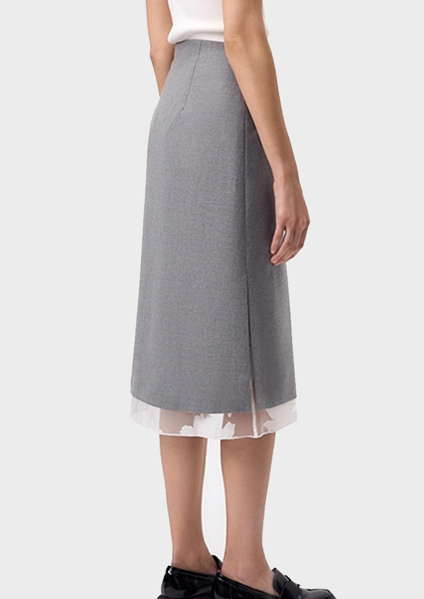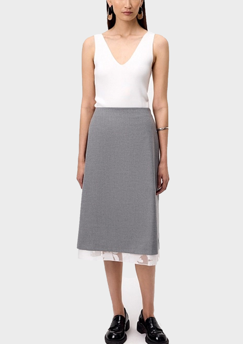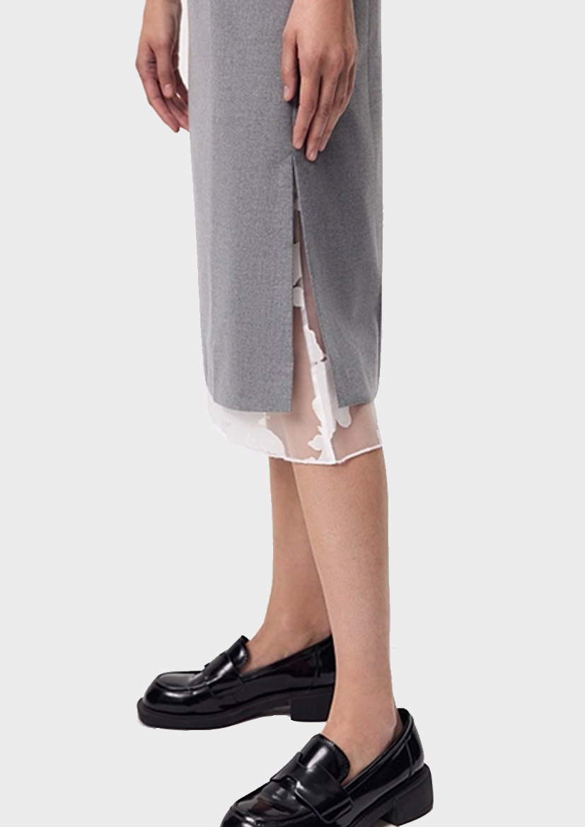 Особую выразительность модели придаёт разница длин основного слоя и подкладки: укороченный верхний слой открывает нижний ярус из белой органзы с набивным цветочным рисунком, создавая изящный акцент и воплощая актуальные тренды сезона — игру с многослойностью и прозрачностью.