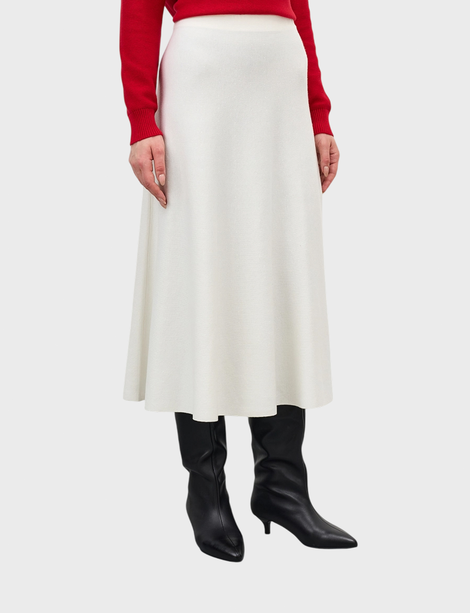 Юбка цвета «молочного» станет вашим лучшим союзником: нежность текстуры (50% полиэстер, 15% вискозы, 15% акрила, 10% нейлона, 10% шерсти) гарантирует мягкость к телу и элегантную простоту стиля.