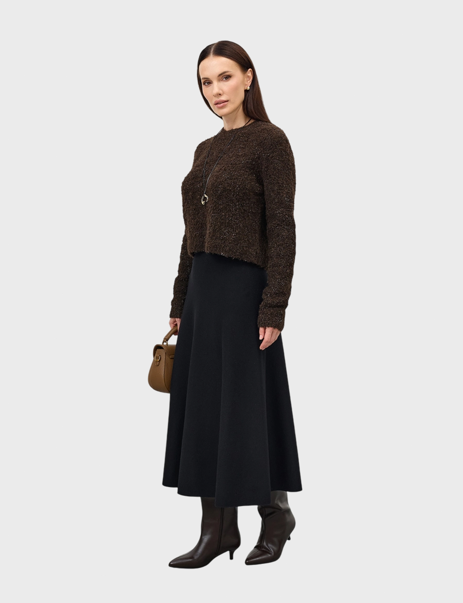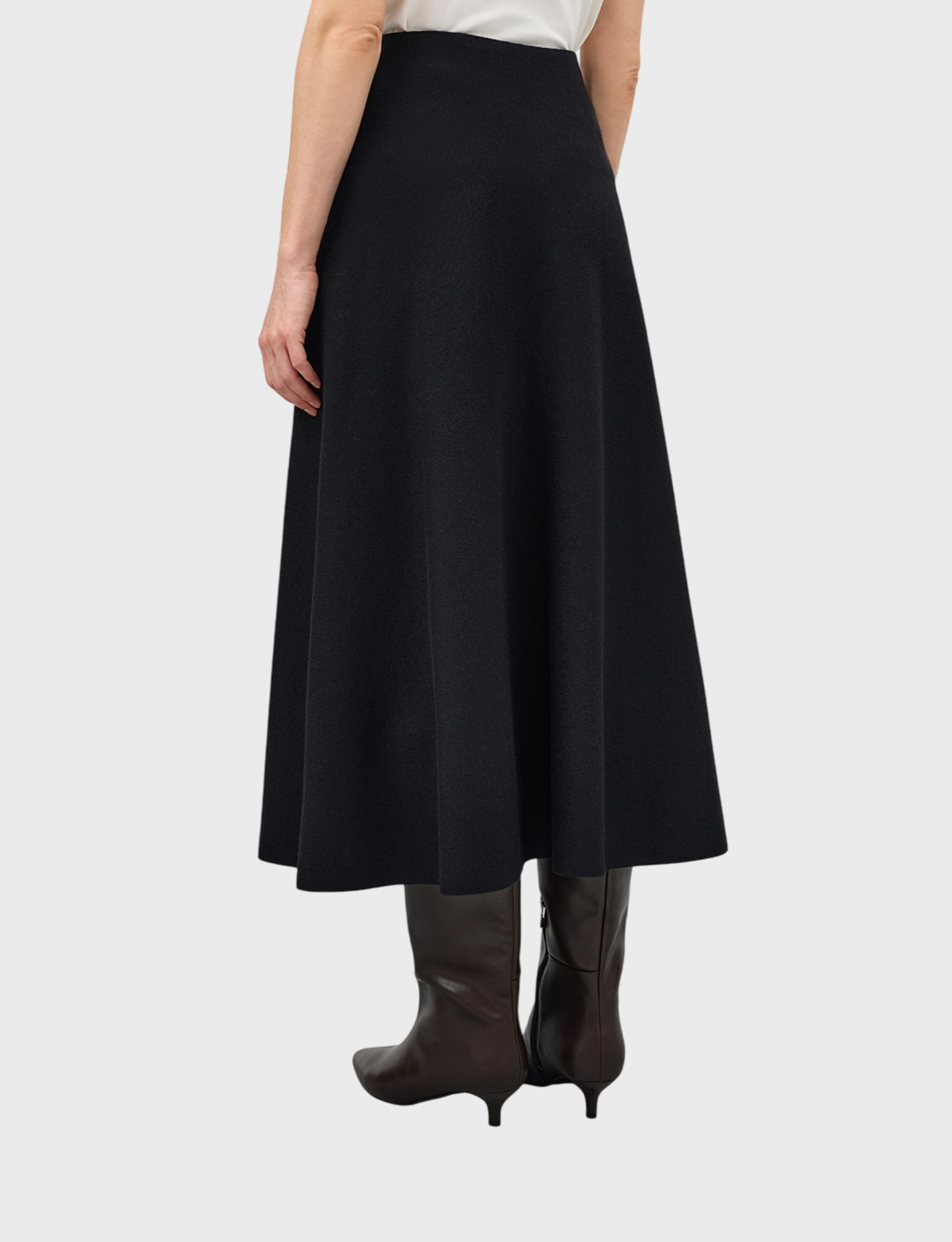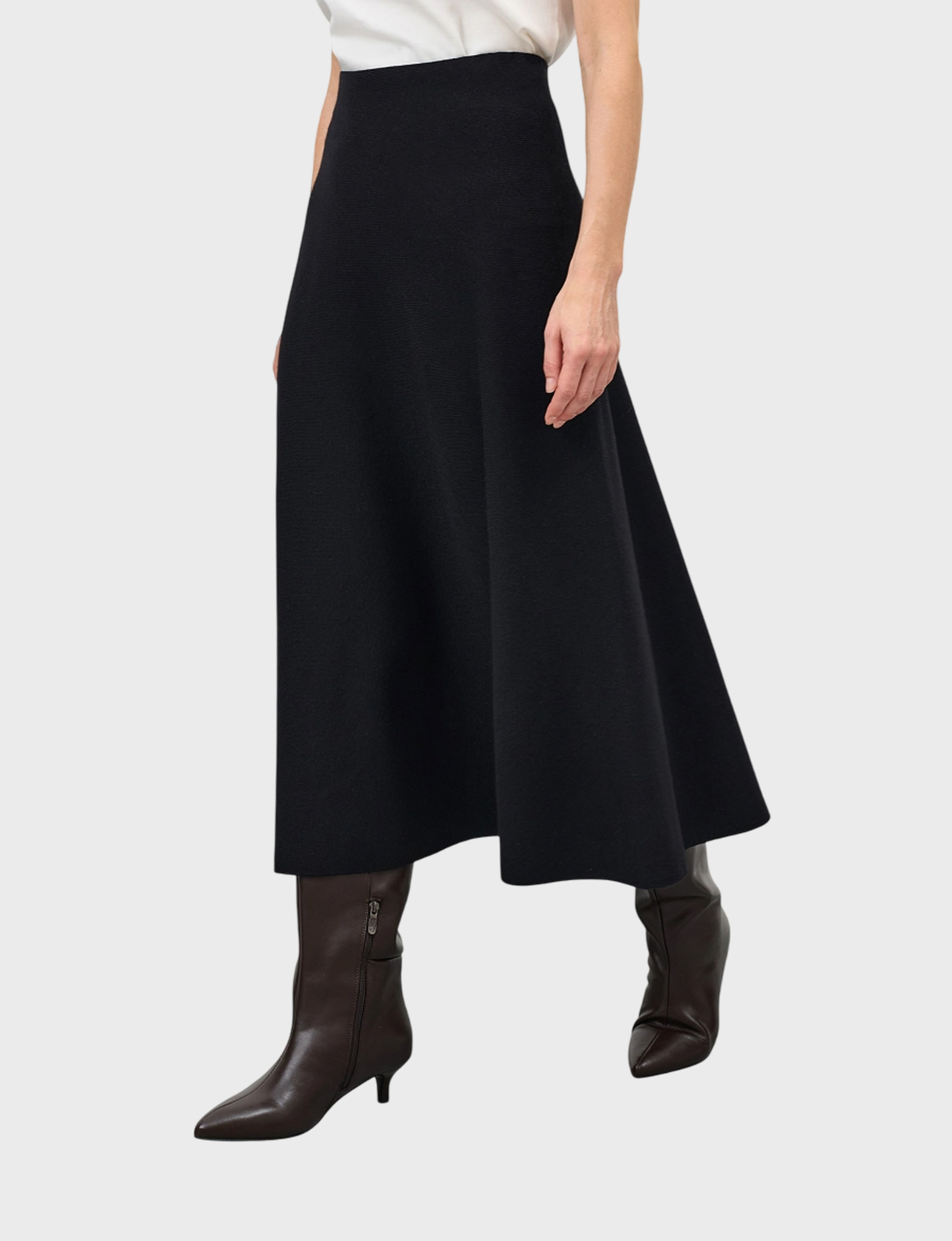 Трикотажная юбка-миди А-силуэта. Резинка по линии талии. В составе вискоза и шерсть.