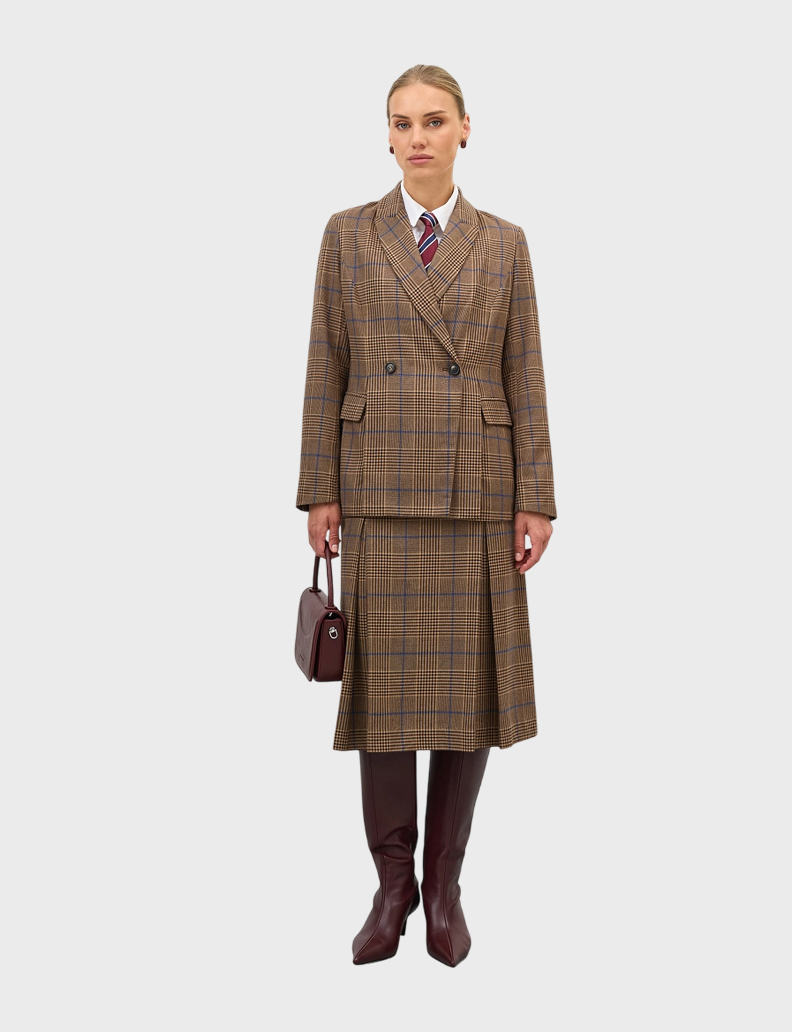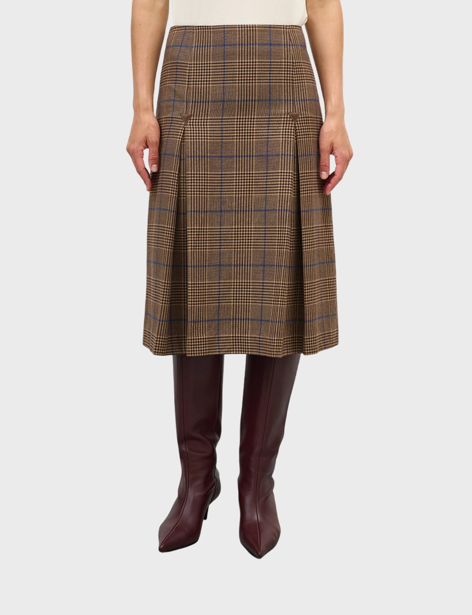 Коричневый оттенок универсален и легко сочетается с базовыми вещами гардероба. Эластичная талия обеспечивает комфортное ношение, подчеркивая фигуру без лишних усилий. Состав из 65% полиэстера и 35% вискозы гарантирует долговечность и приятный к телуtouch.