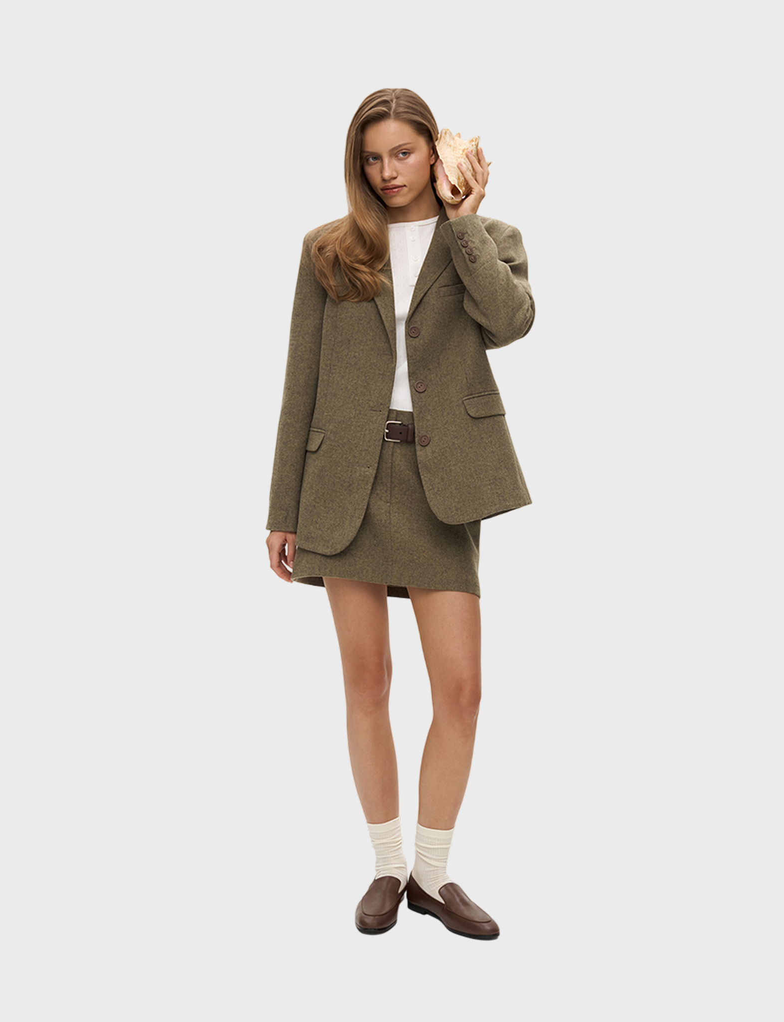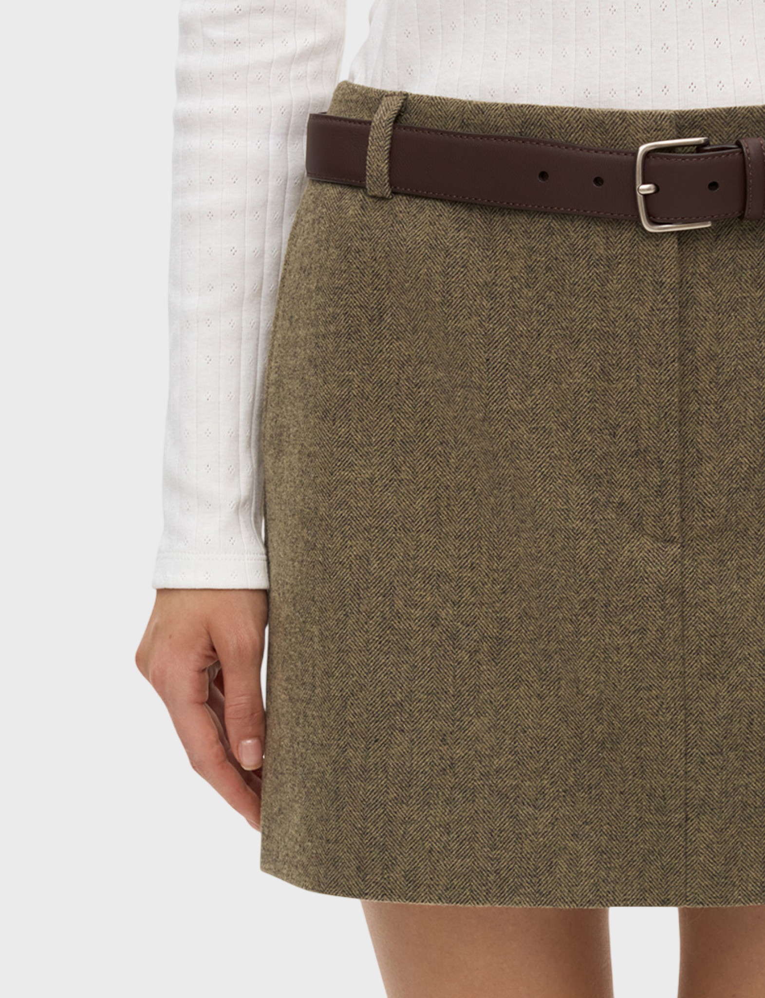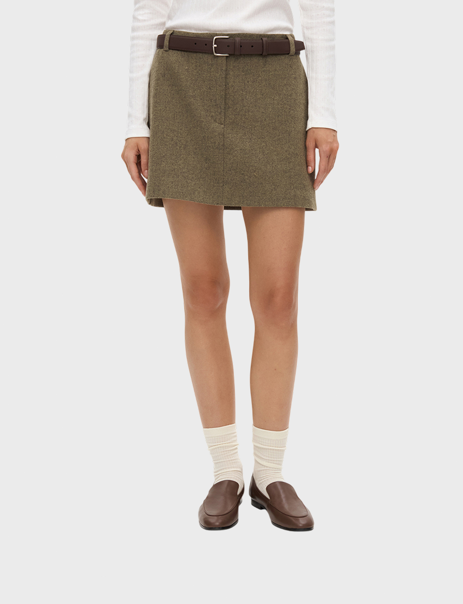 Юбка мини из костюмной шерсти прямого силуэта. Посадка средняя по фигуре, пояс модели дополнен шлевками под ремень. Застегивается на потайной крючок и молнию, по бокам – карманы. Модель на подкладке с вискозой, материал пропускает воздух, что делает юбку более комфортной.