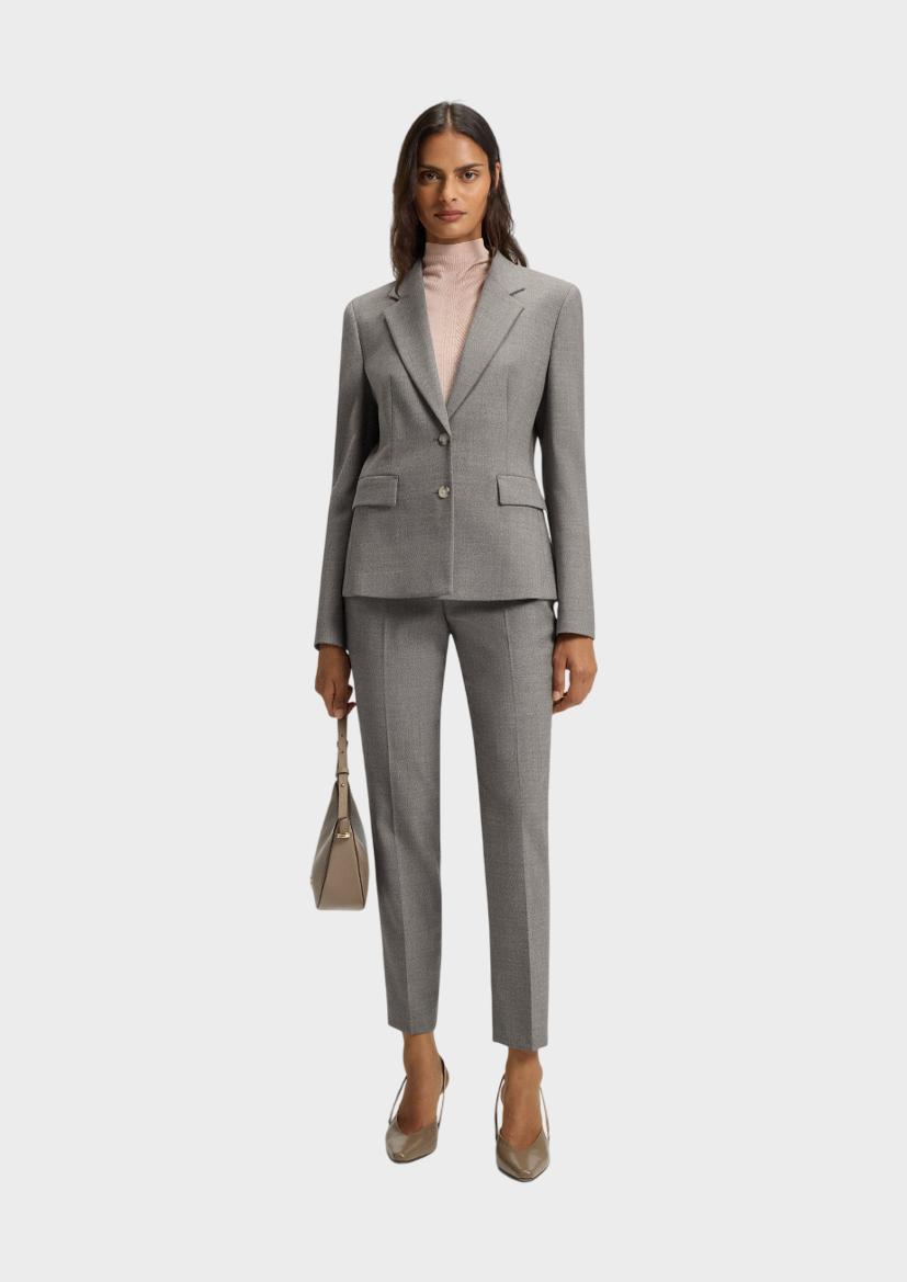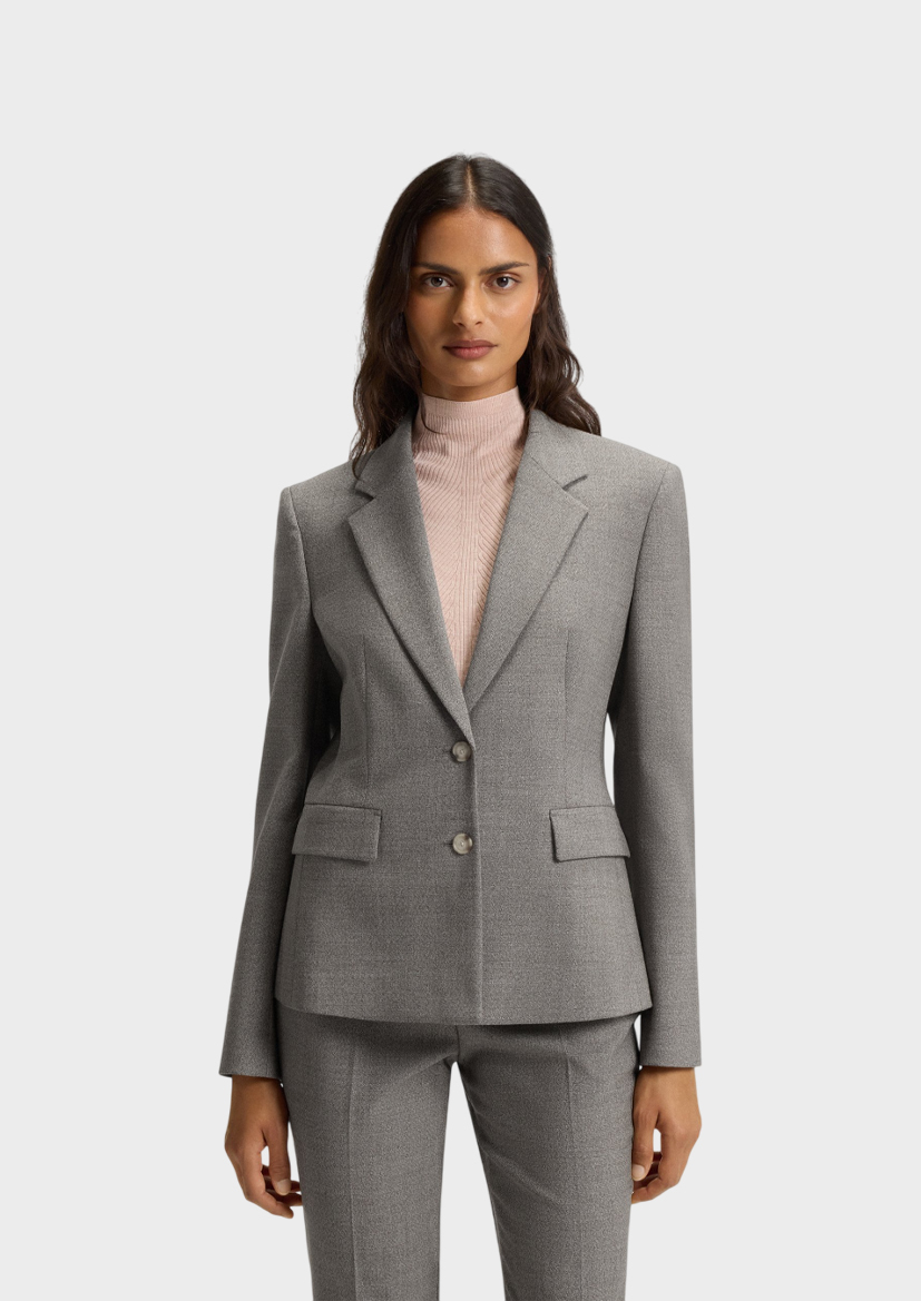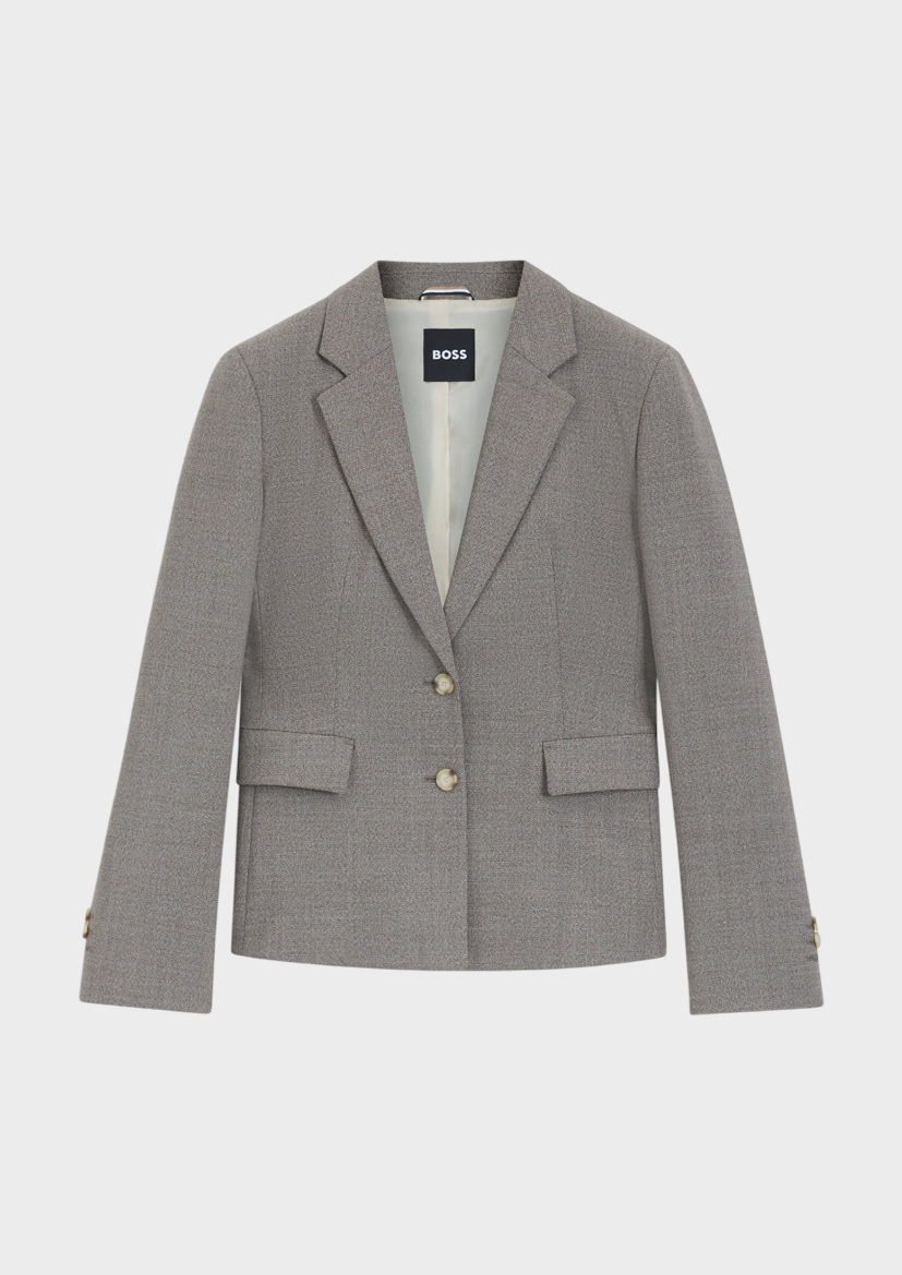 Женственный жакет BOSS Jia11 – стильный акцент вашего гардероба! Изящно сочетает серо-коричневые оттенки и безупречное качество шерсти (98%), дополненной эластичными нитями для идеального прилегания.