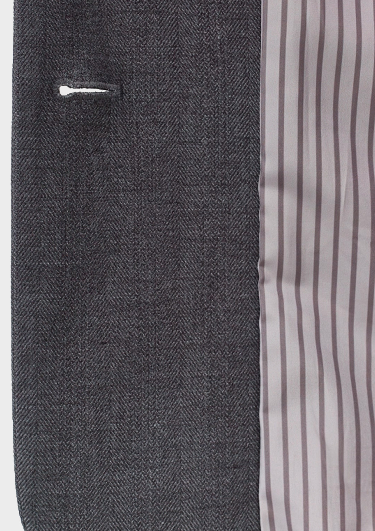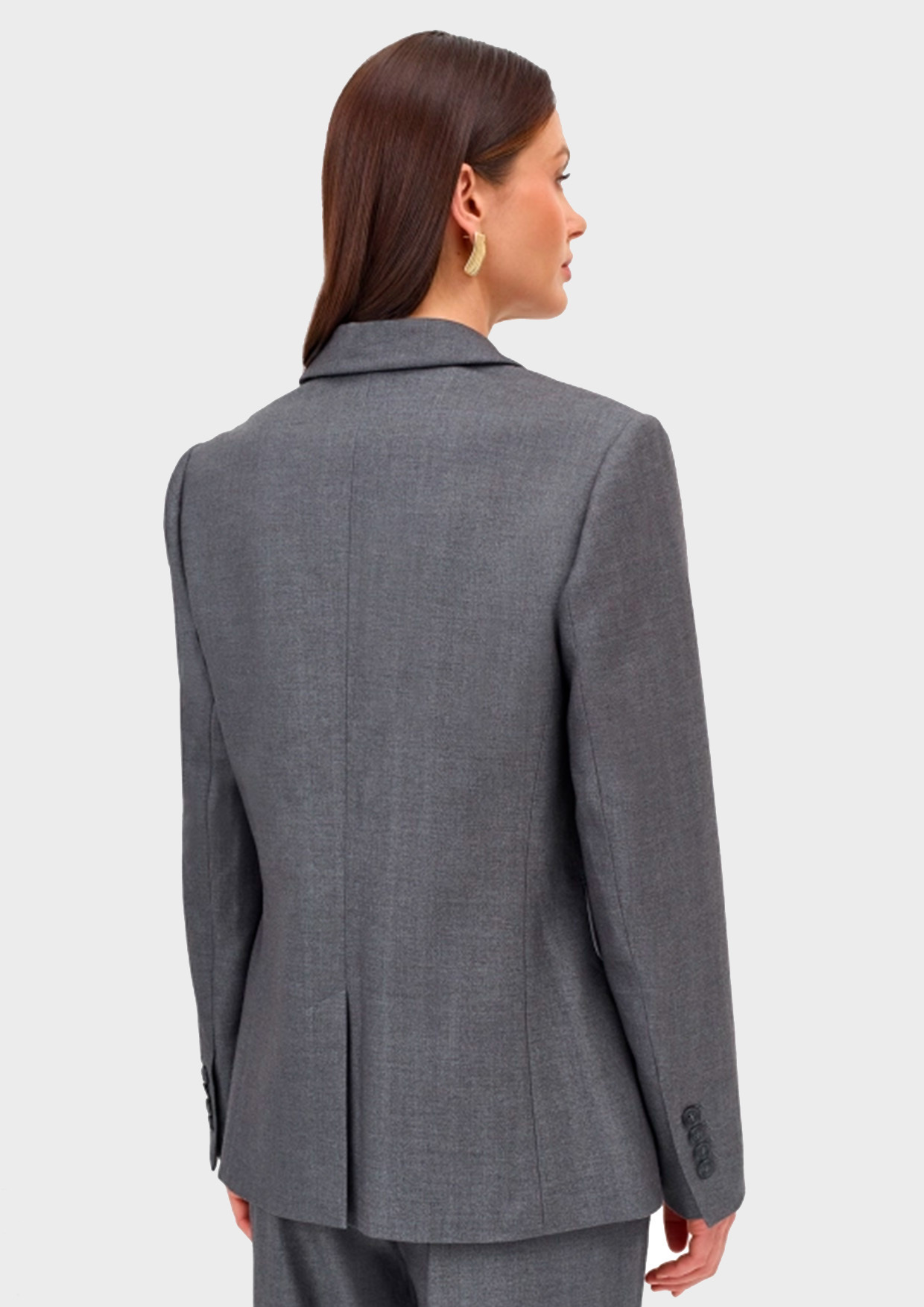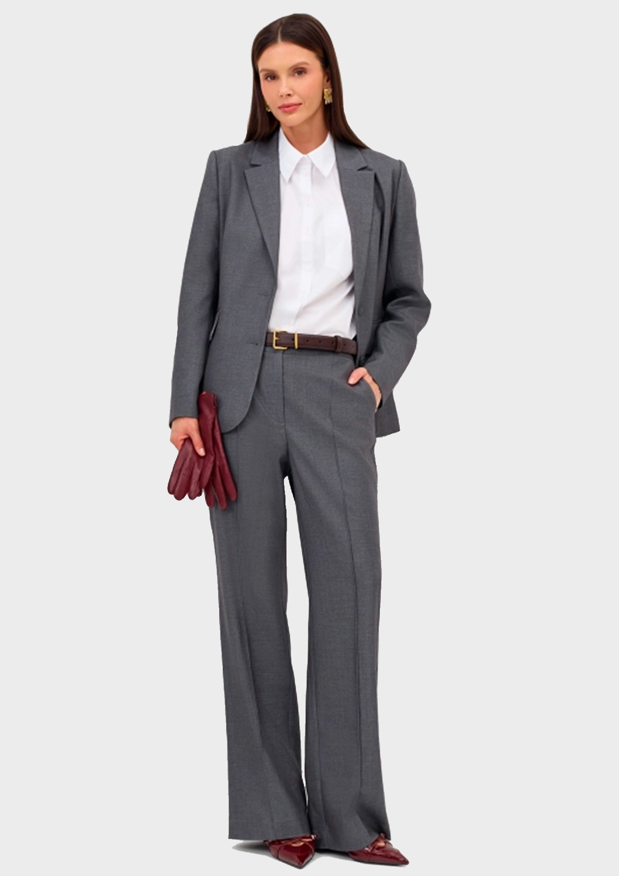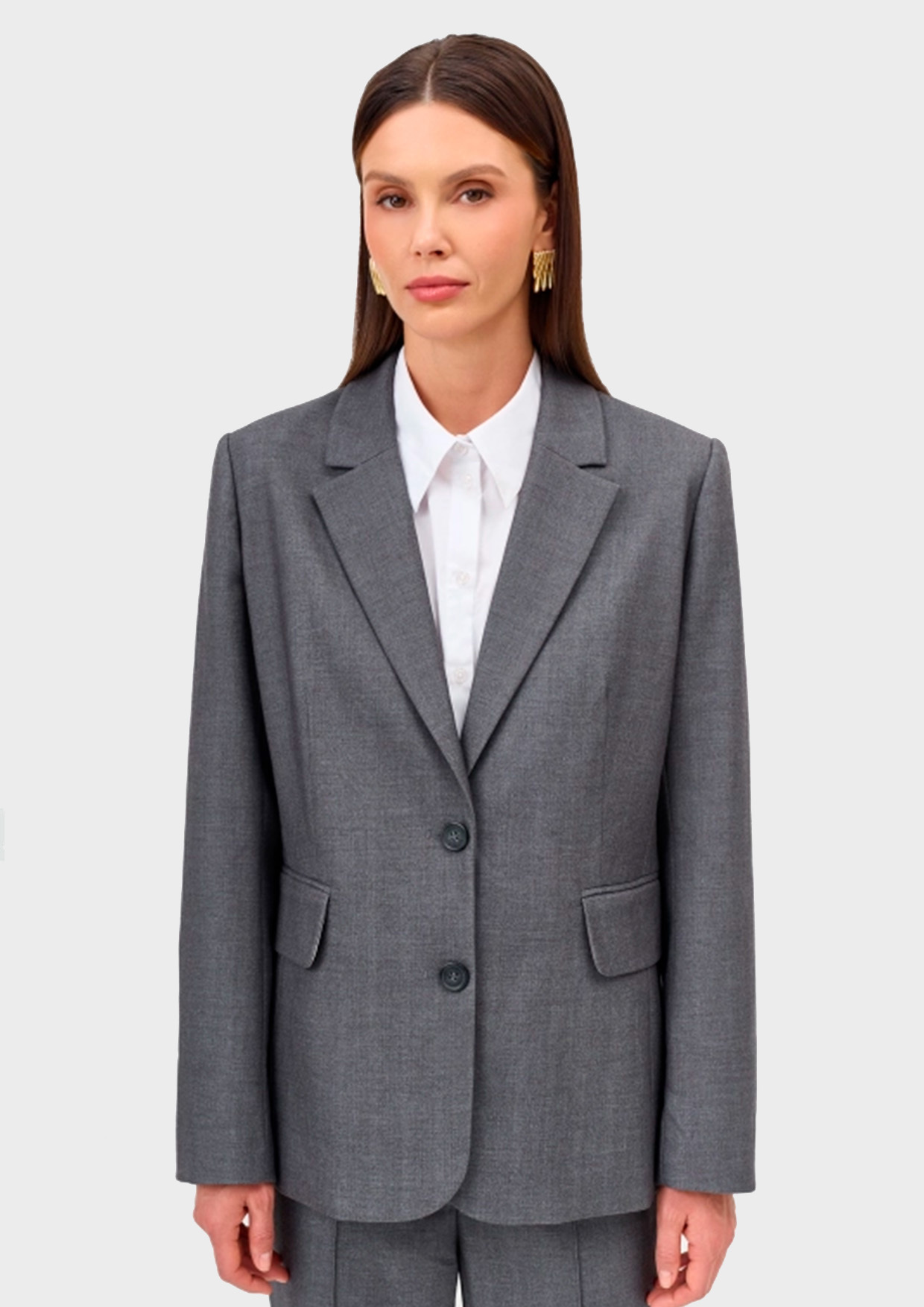 Однобортный жакет с тенселем и шерстью в составе. Прямой силуэт. Классический английский воротник с лацканами. Боковые карманы с клапанами. Застежка на пуговицы. Контрастная подкладка в полоску.