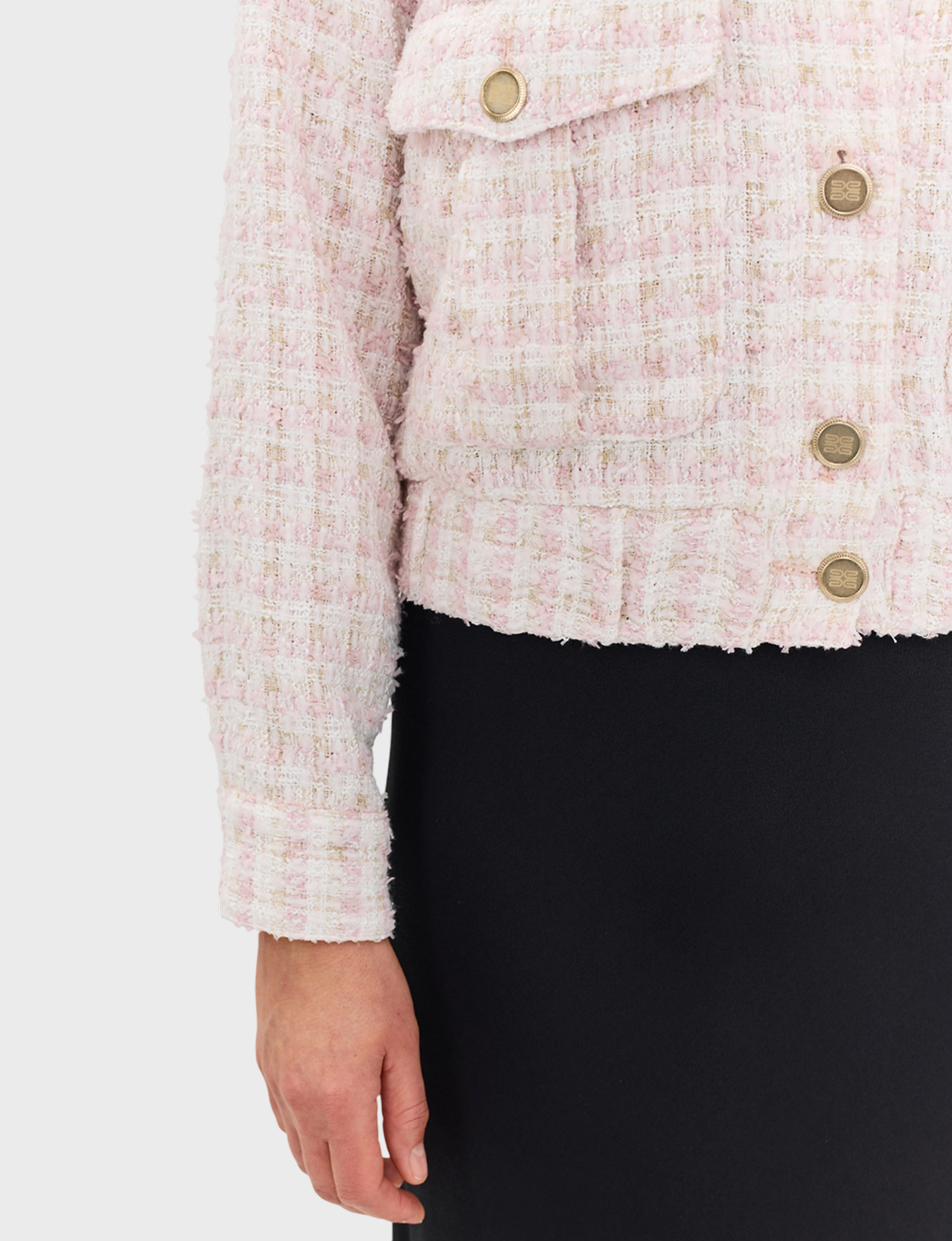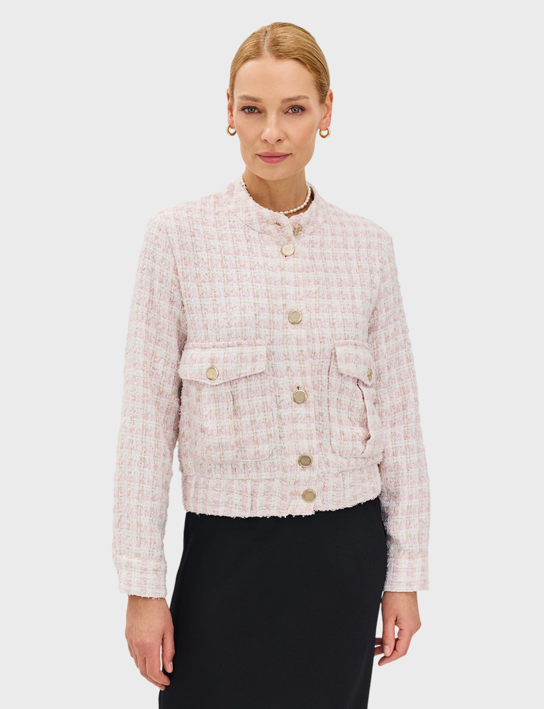 Твидовый жакет в стиле Chanel от немецкого бренда BULMER – это стильное и практичное решение для создания как повседневных, так и вечерних образов. Модель выполнена из нежного, но при этом не мнущегося полиэстера, что делает его идеальным вариантом для активного образа жизни.