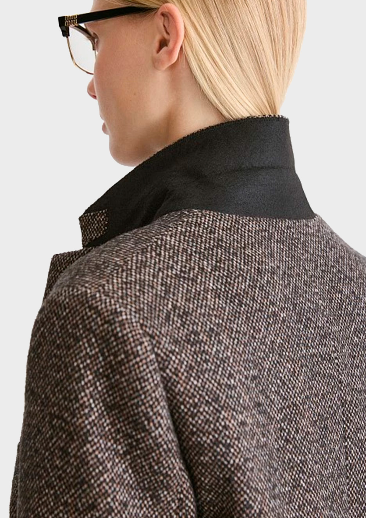 Стильный пиджак выполнен в черно-бежевой классической расцветке, идеально подходящей для демисезонной одежды.