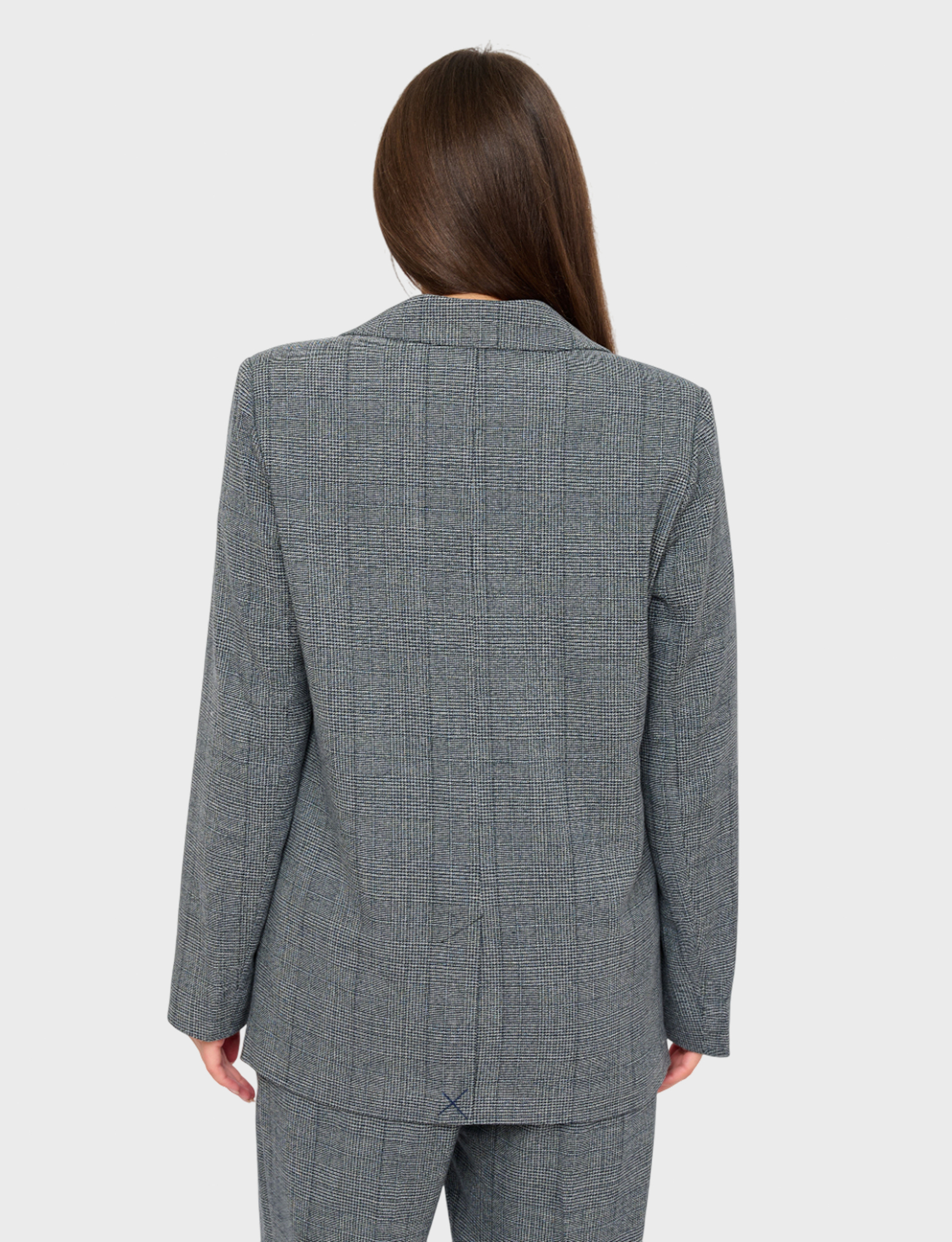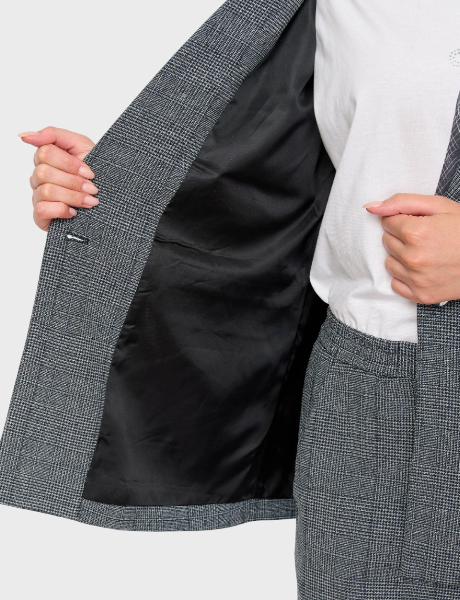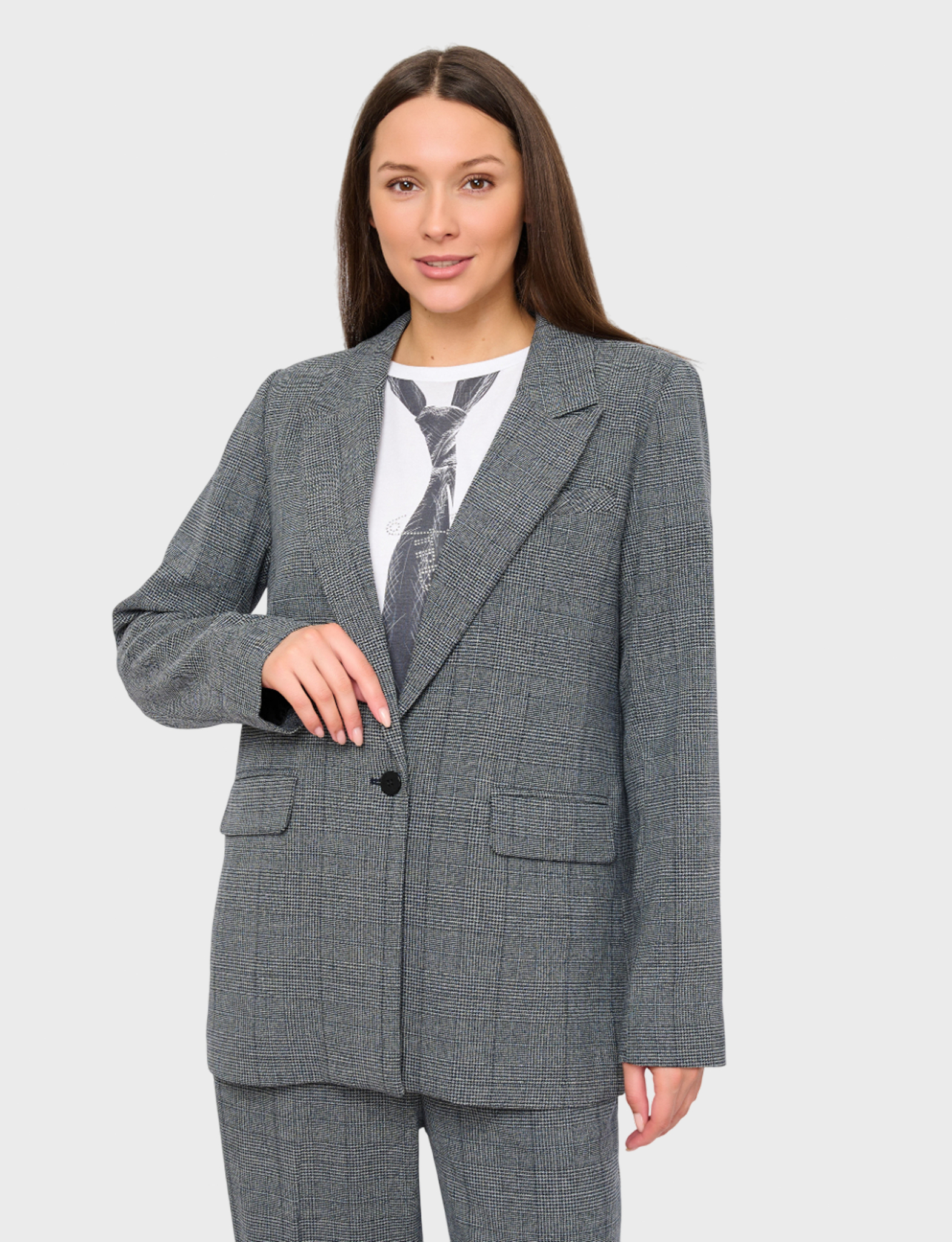 Женский жакет UNQ серого цвета – стильный акцент вашего гардероба! Удобная форма, современный крой и сочетание материалов (65% полиэстер, 30% шерсть мериноса, 5% спандекс) обеспечивают комфорт при носке.