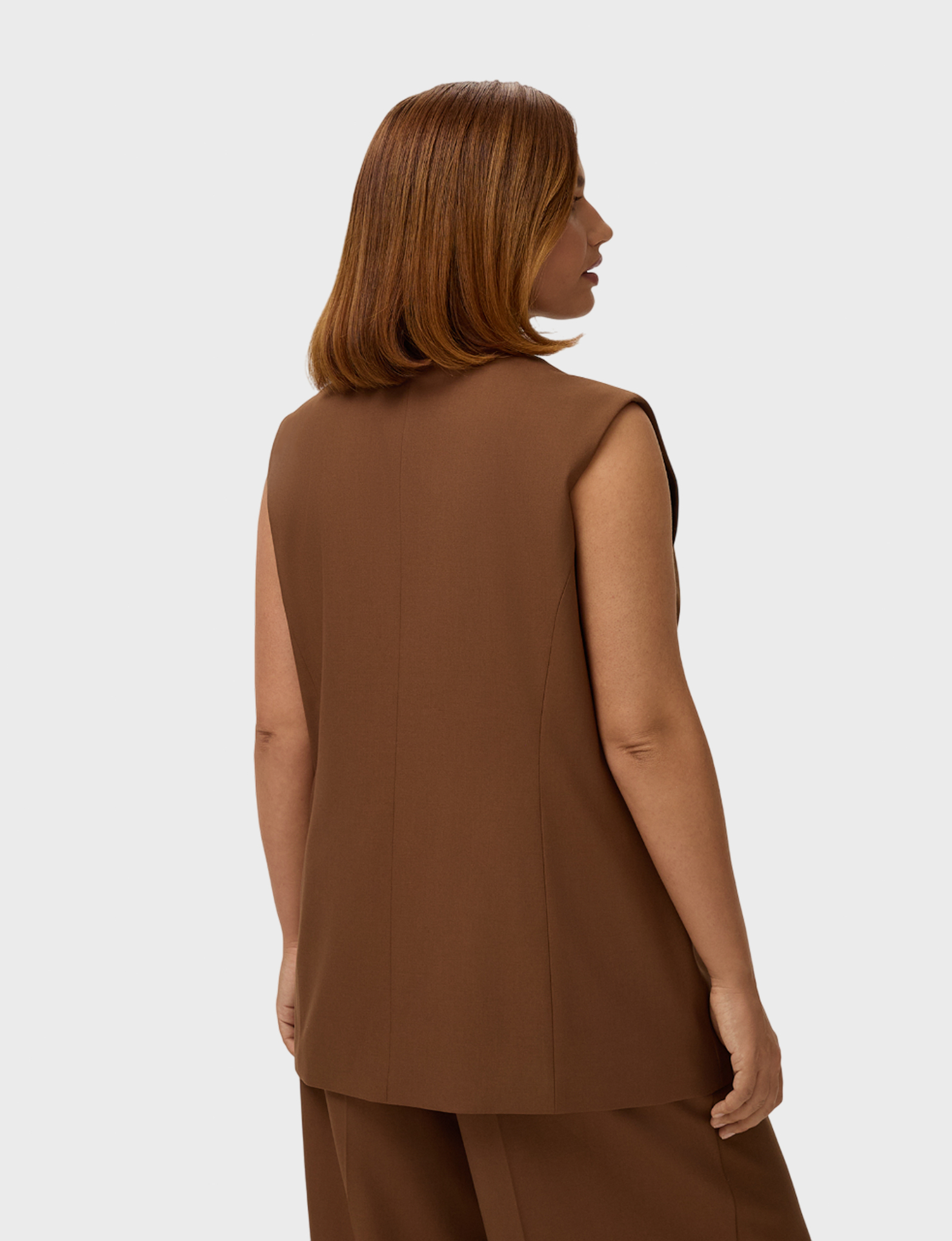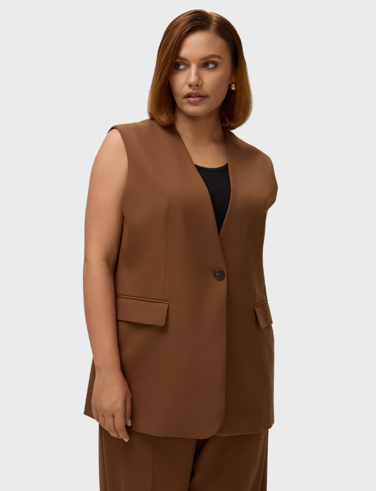 Женский жилет ELIS цвета коричневого – стильный аксессуар, который подчеркнет вашу индивидуальность! Удобство ношения обеспечивает сочетание материалов: 62% полиэстера, 34% вискозы и 4% полиуретана.