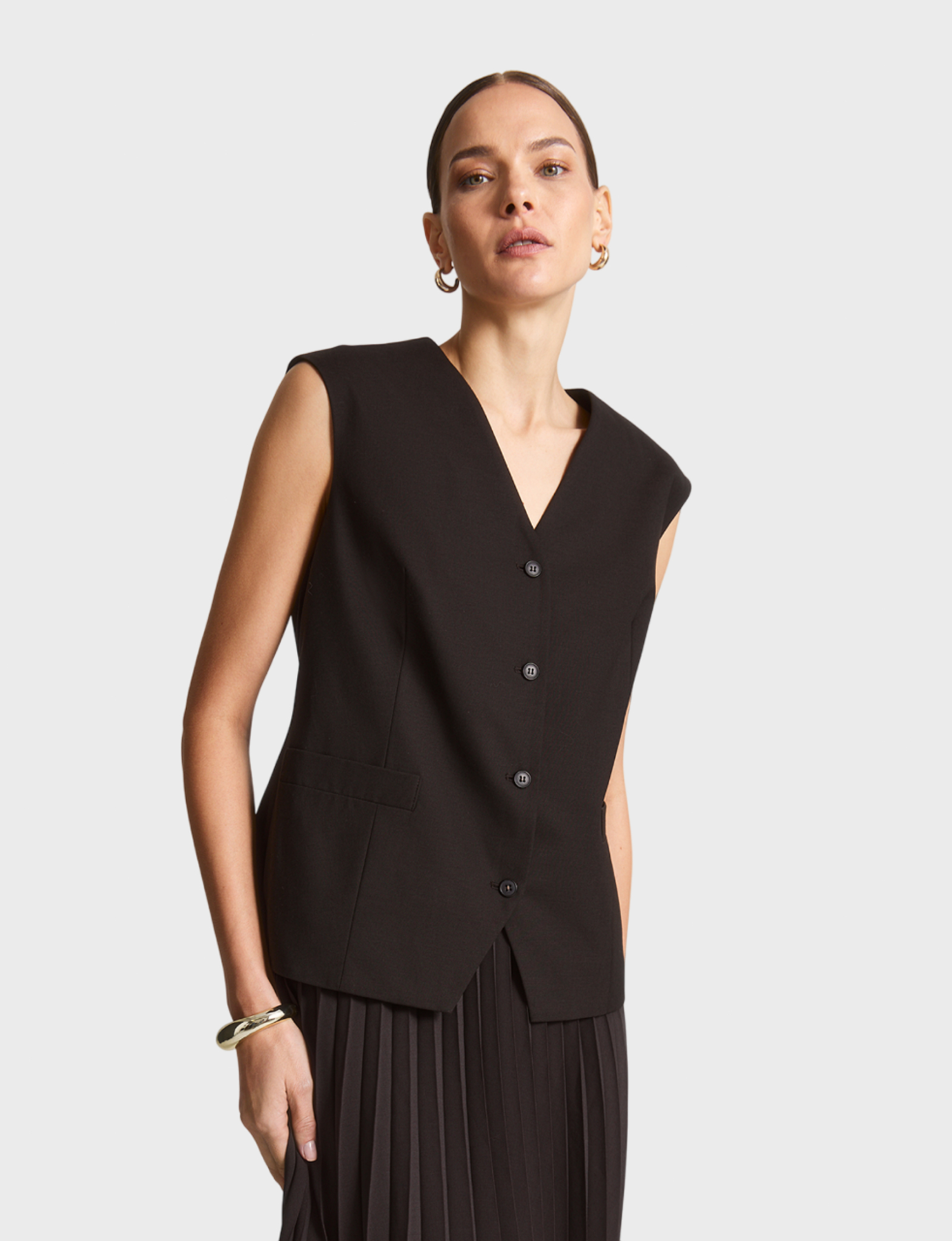 Женская мода от ELIS! Желаете подчеркнуть свою индивидуальность? Стильный жилет тёмно-коричневого цвета станет вашим лучшим помощником! Состав из 50% полиэстера, 26% вискозы, 19% шерсти и 5% полиуретана обеспечит комфорт и тепло даже в прохладную погоду.